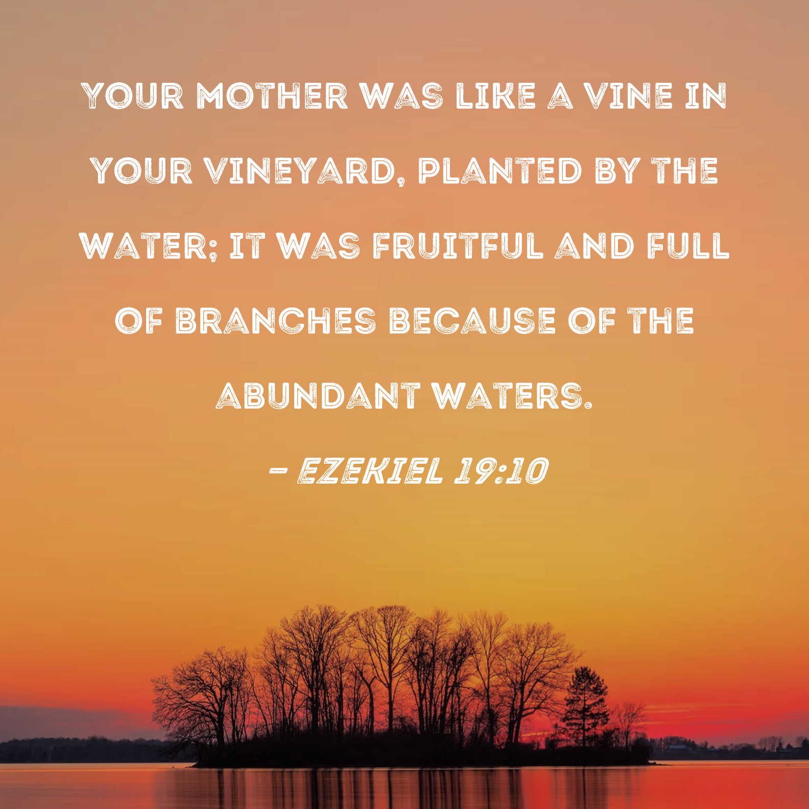 Ezekiel 19:10 Your mother was like a vine in your vineyard, planted by the water; it was fruitful and full of branches because of the abundant waters.