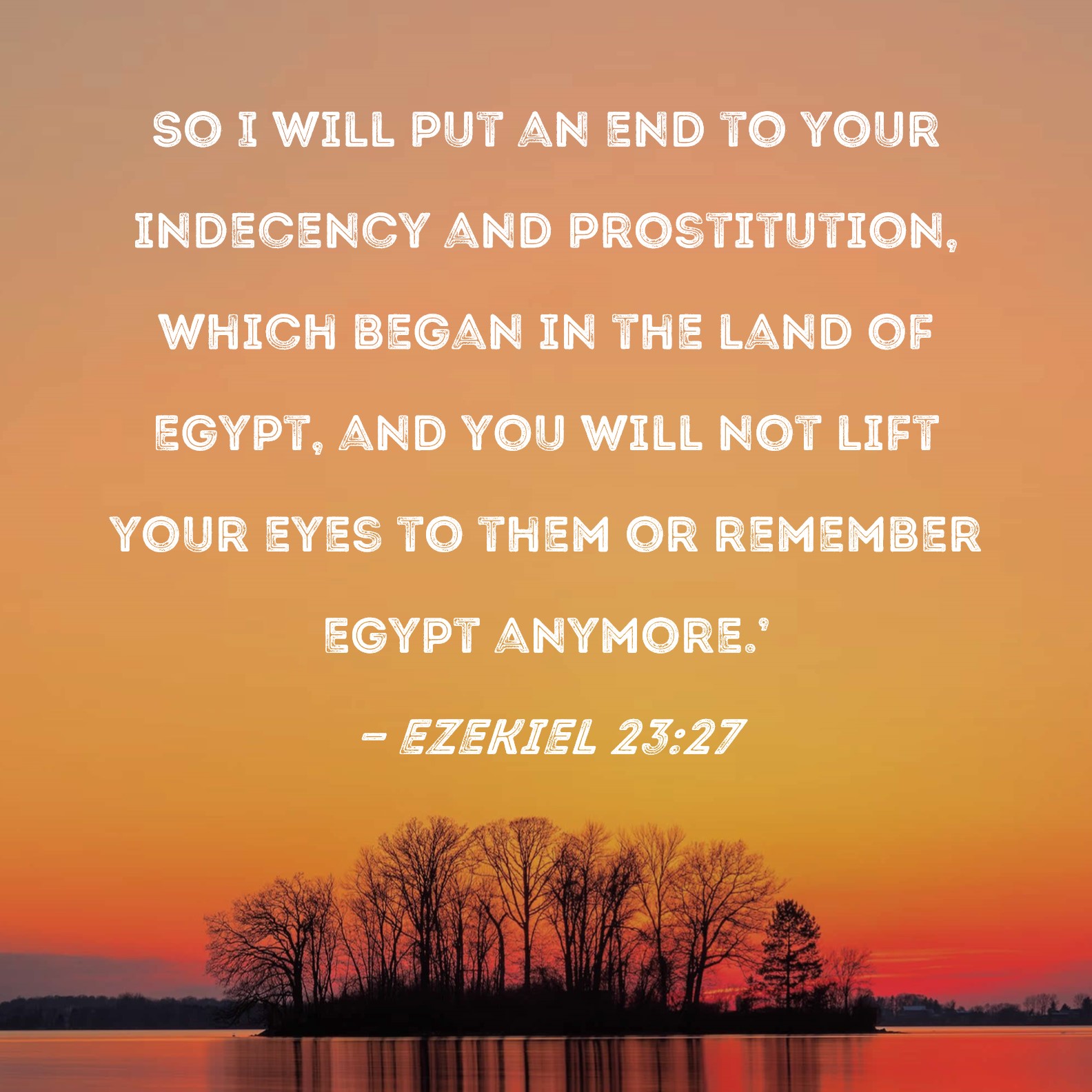 Ezekiel 23:27 So I will put an end to your indecency and prostitution, which began in the land of Egypt, and you will not lift your eyes to them or remember Egypt anymore.'