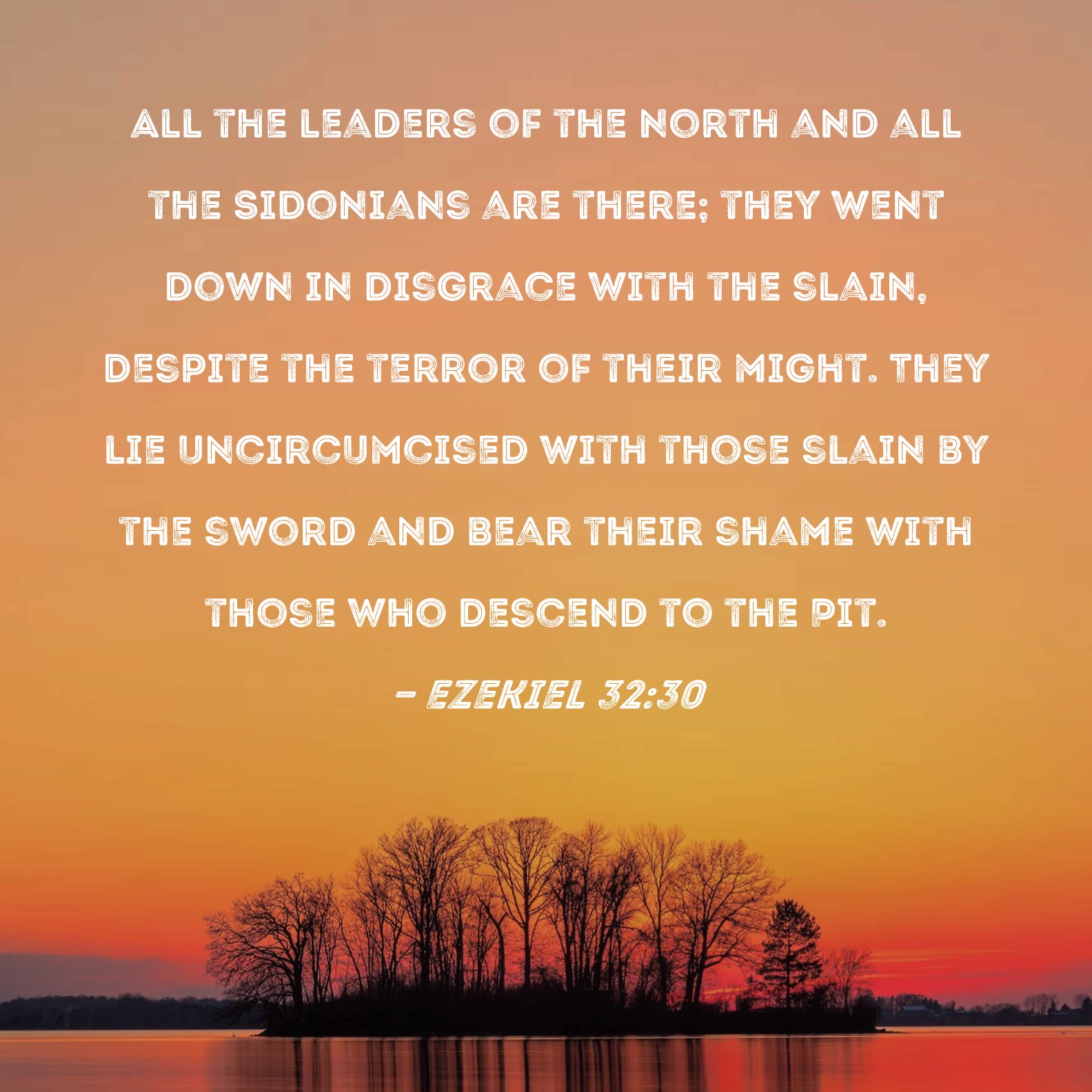 Ezekiel 32:30 All the leaders of the north and all the Sidonians are there; they went down in disgrace with the slain, despite the terror of their might. They lie uncircumcised with those slain by the sword and bear their shame with those who descend to the Pit.