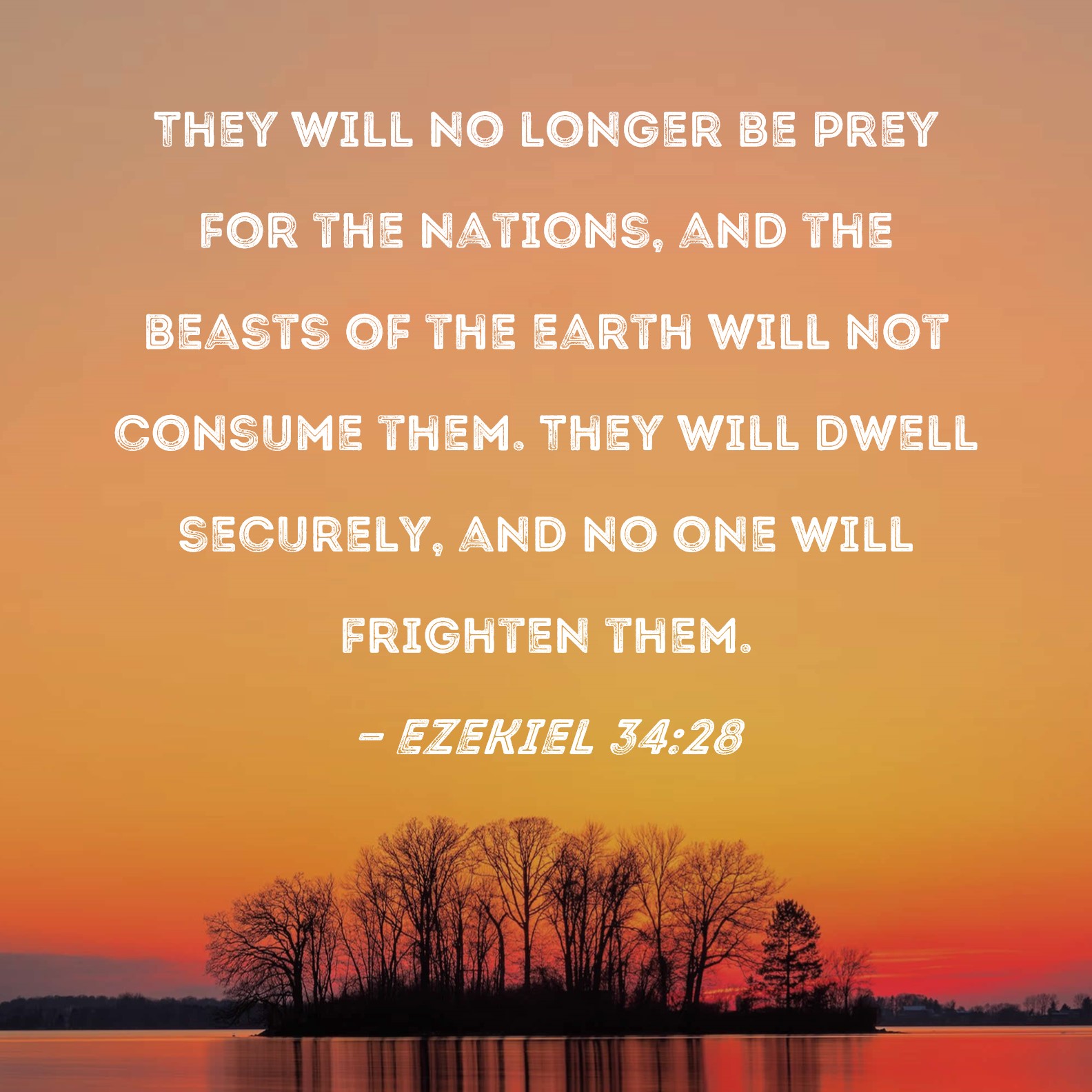 Ezekiel 34:28 They will no longer be prey for the nations, and the beasts of the earth will not consume them. They will dwell securely, and no one will frighten them.
