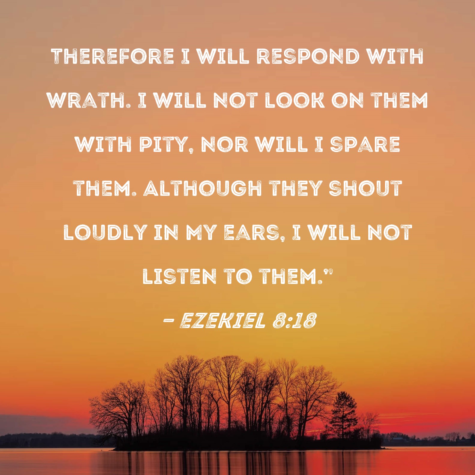 Ezekiel 8:18 Therefore I will respond with wrath. I will not look on them with pity, nor will I spare them. Although they shout loudly in My ears, I will not listen to them."