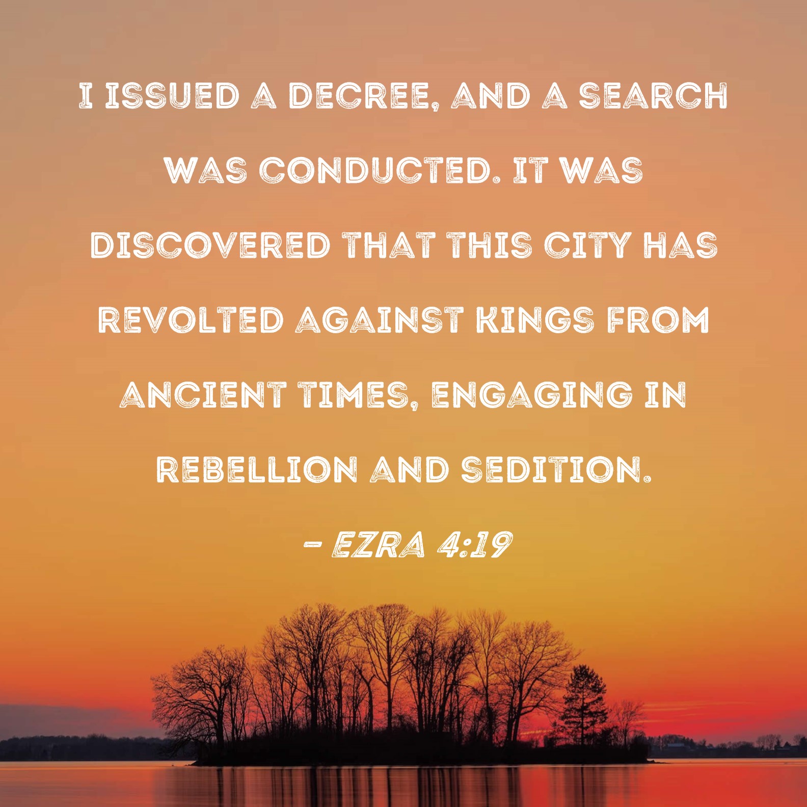 Ezra 4:19 I issued a decree, and a search was conducted. It was discovered that this city has revolted against kings from ancient times, engaging in rebellion and sedition.