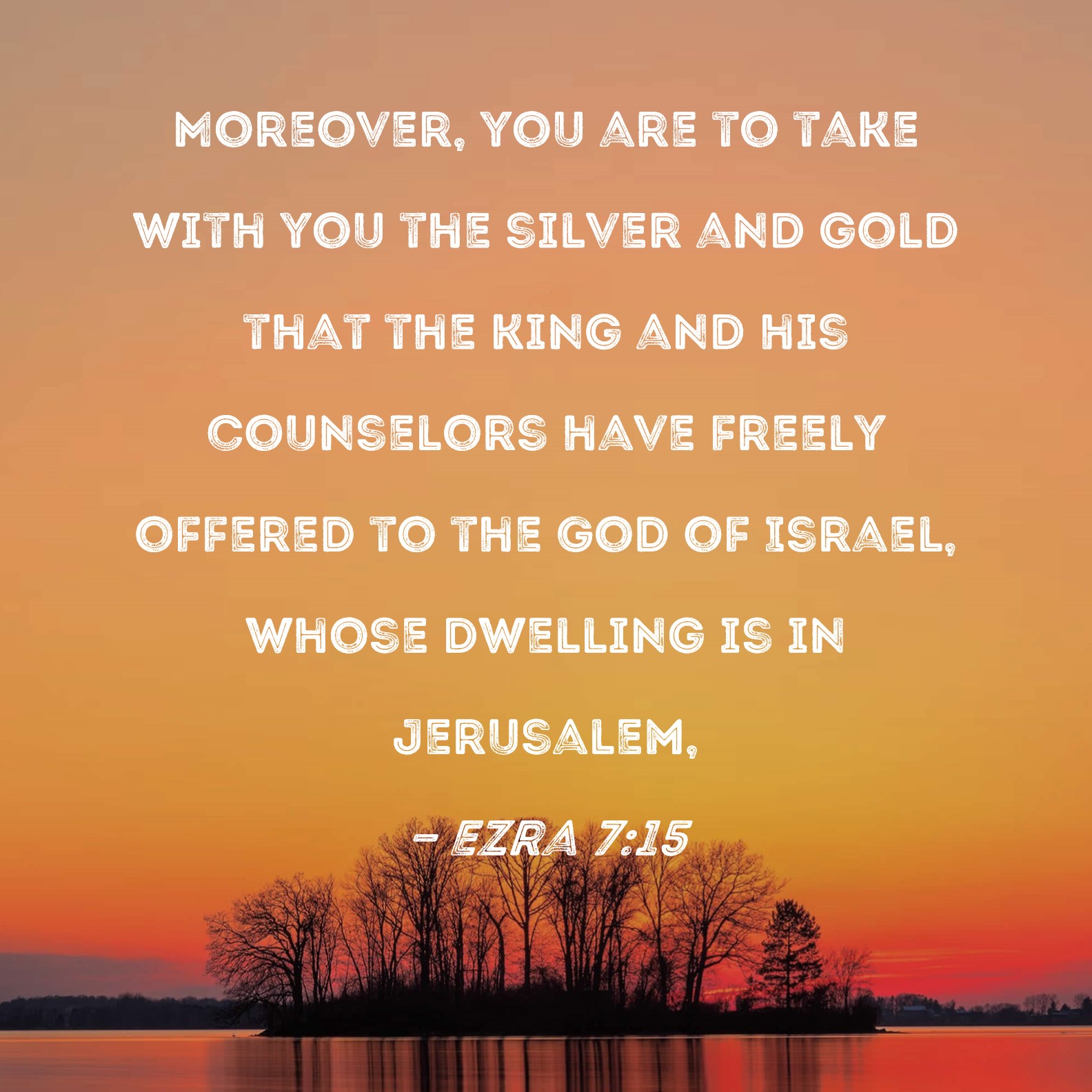 Ezra 7:15 Moreover, you are to take with you the silver and gold that the king and his counselors have freely offered to the God of Israel, whose dwelling is in Jerusalem,