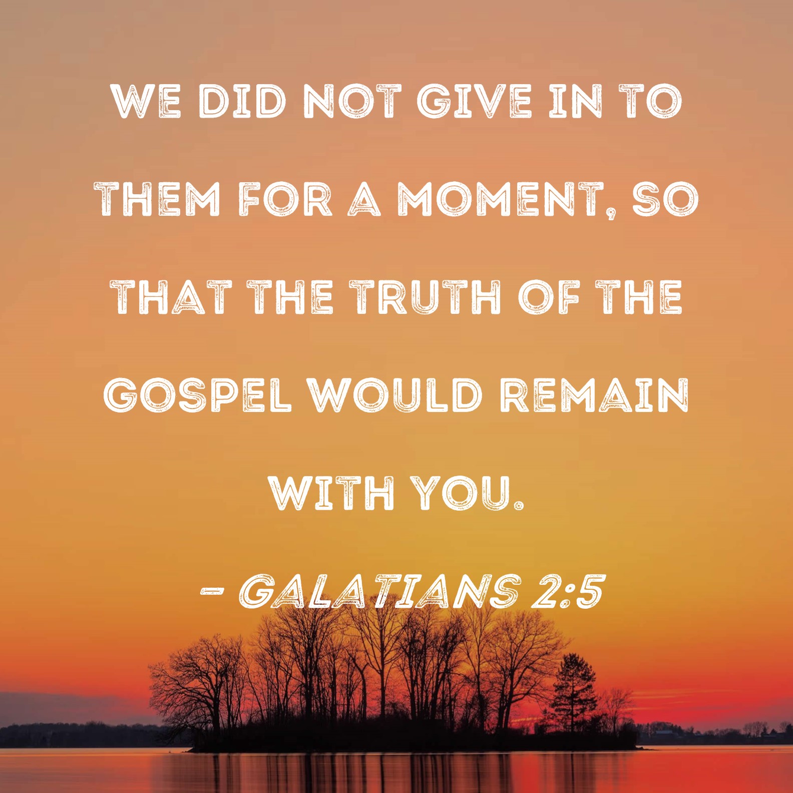 Galatians 2:5 We did not give in to them for a moment, so that the truth of the gospel would remain with you.