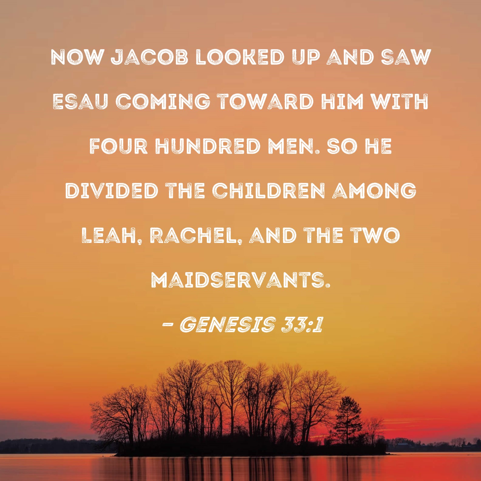 Genesis 33:1 Now Jacob looked up and saw Esau coming toward him with four hundred men. So he divided the children among Leah, Rachel, and the two maidservants.