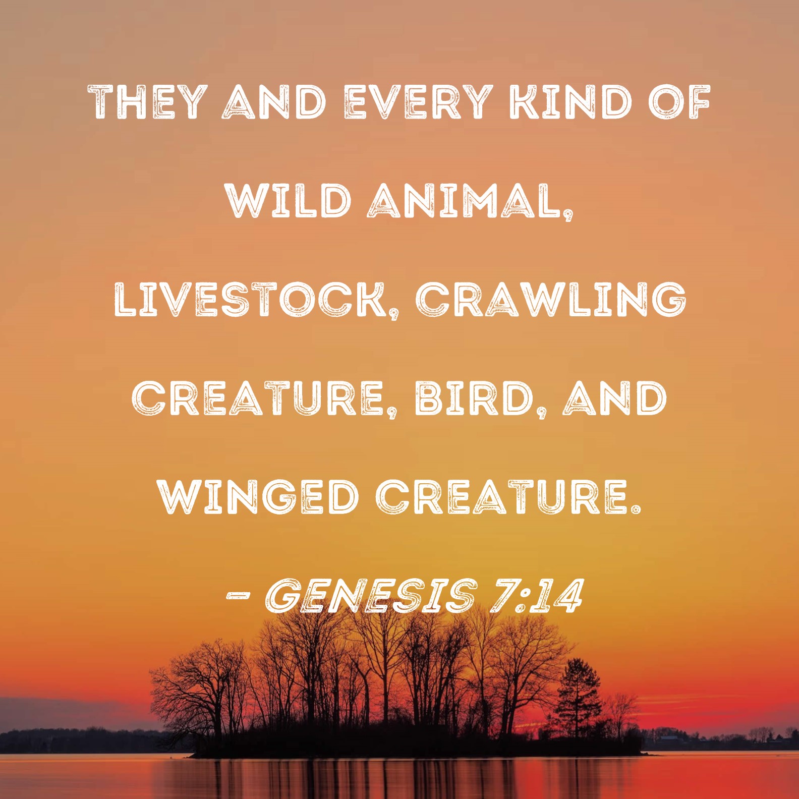 Genesis 7:14 they and every kind of wild animal, livestock, crawling creature, bird, and winged creature.
