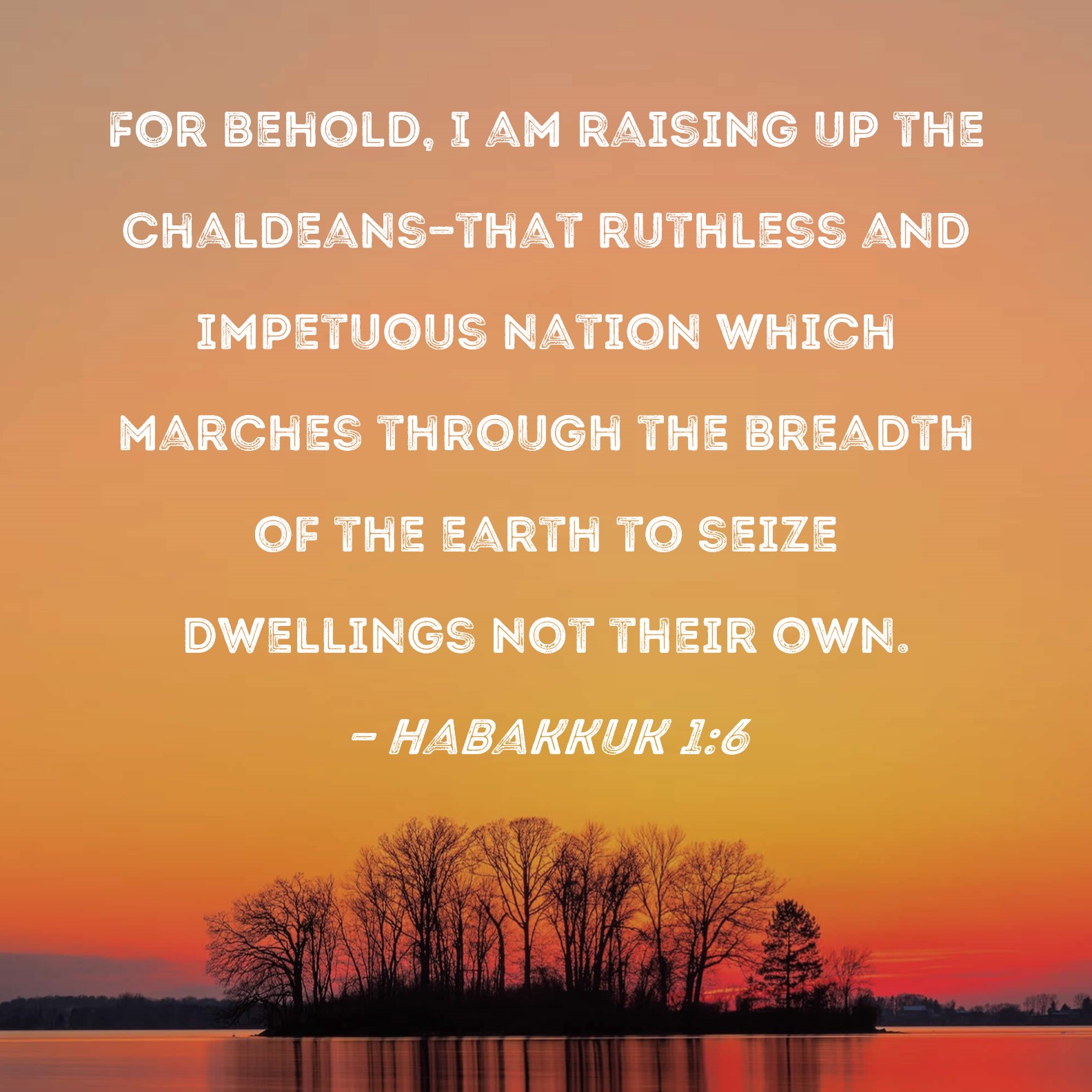 Habakkuk 1:6 For behold, I am raising up the Chaldeans--that ruthless and impetuous nation which marches through the breadth of the earth to seize dwellings not their own.