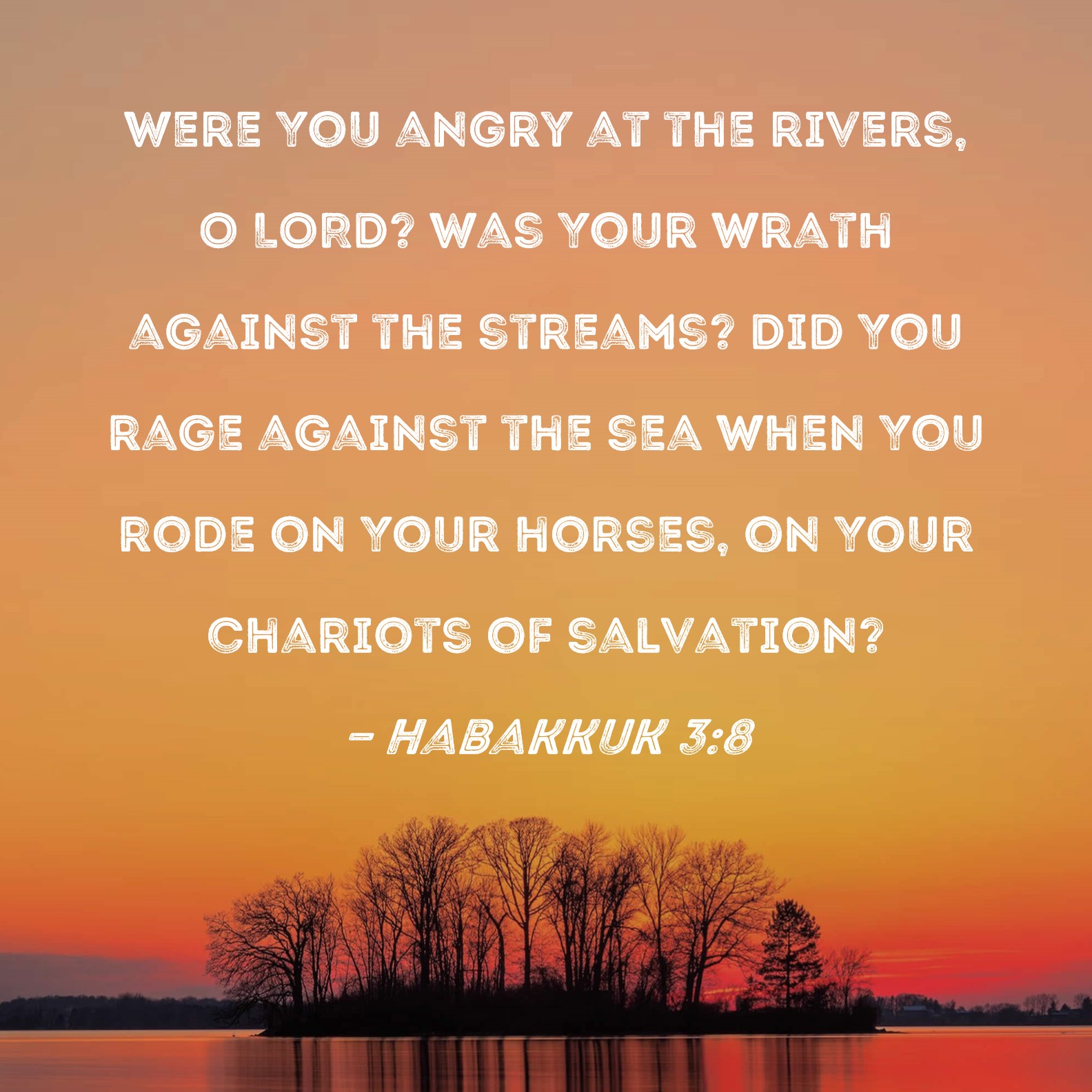 Habakkuk 3:8 Were You angry at the rivers, O LORD? Was Your wrath against the streams? Did You rage against the sea when You rode on Your horses, on Your chariots of salvation?