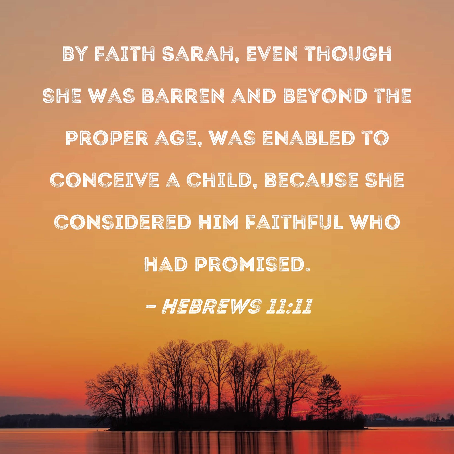 Hebrews 11:11 By faith Sarah, even though she was barren and beyond the proper age, was enabled to conceive a child, because she considered Him faithful who had promised.