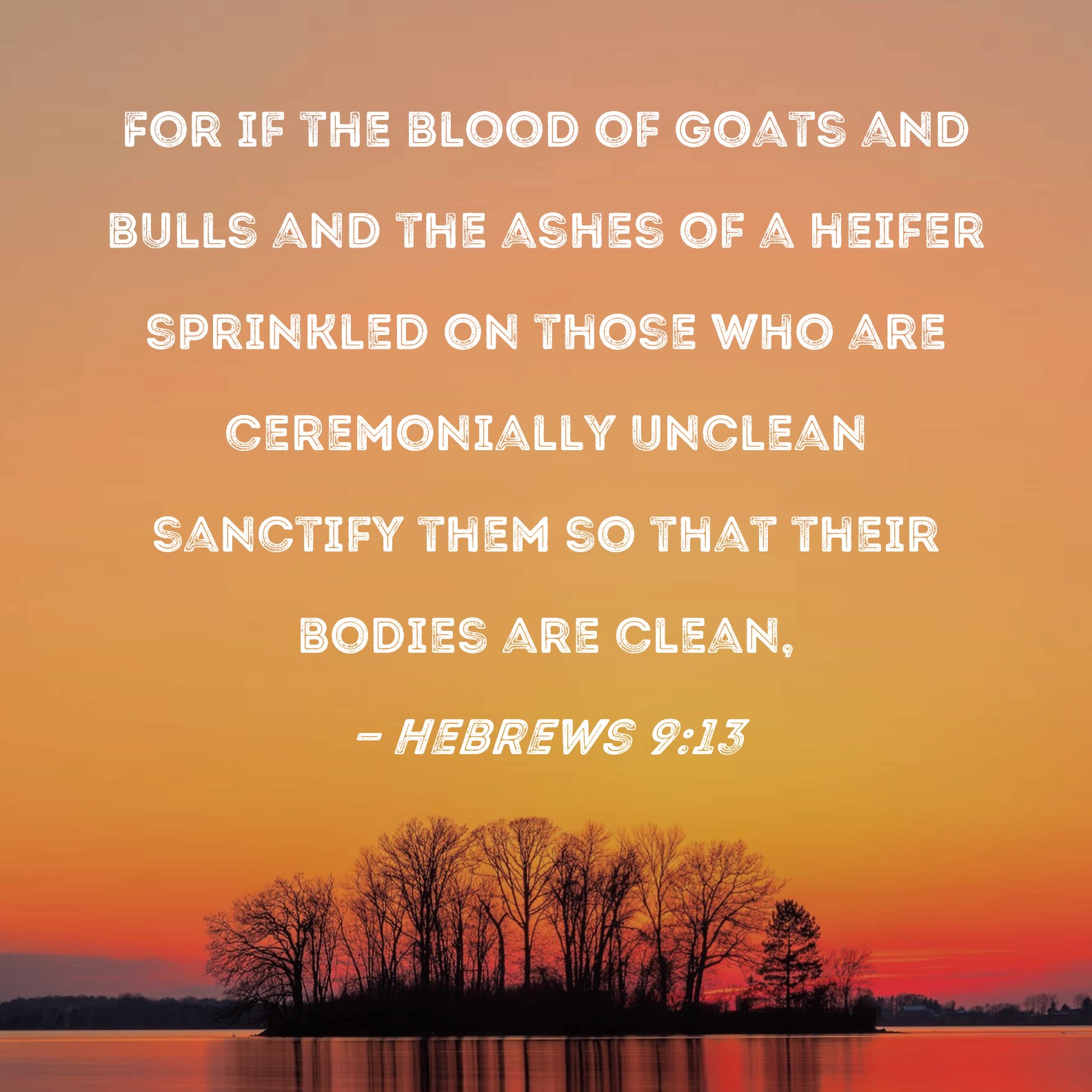 Hebrews 9:13 For if the blood of goats and bulls and the ashes of a heifer sprinkled on those who are ceremonially unclean sanctify them so that their bodies are clean,