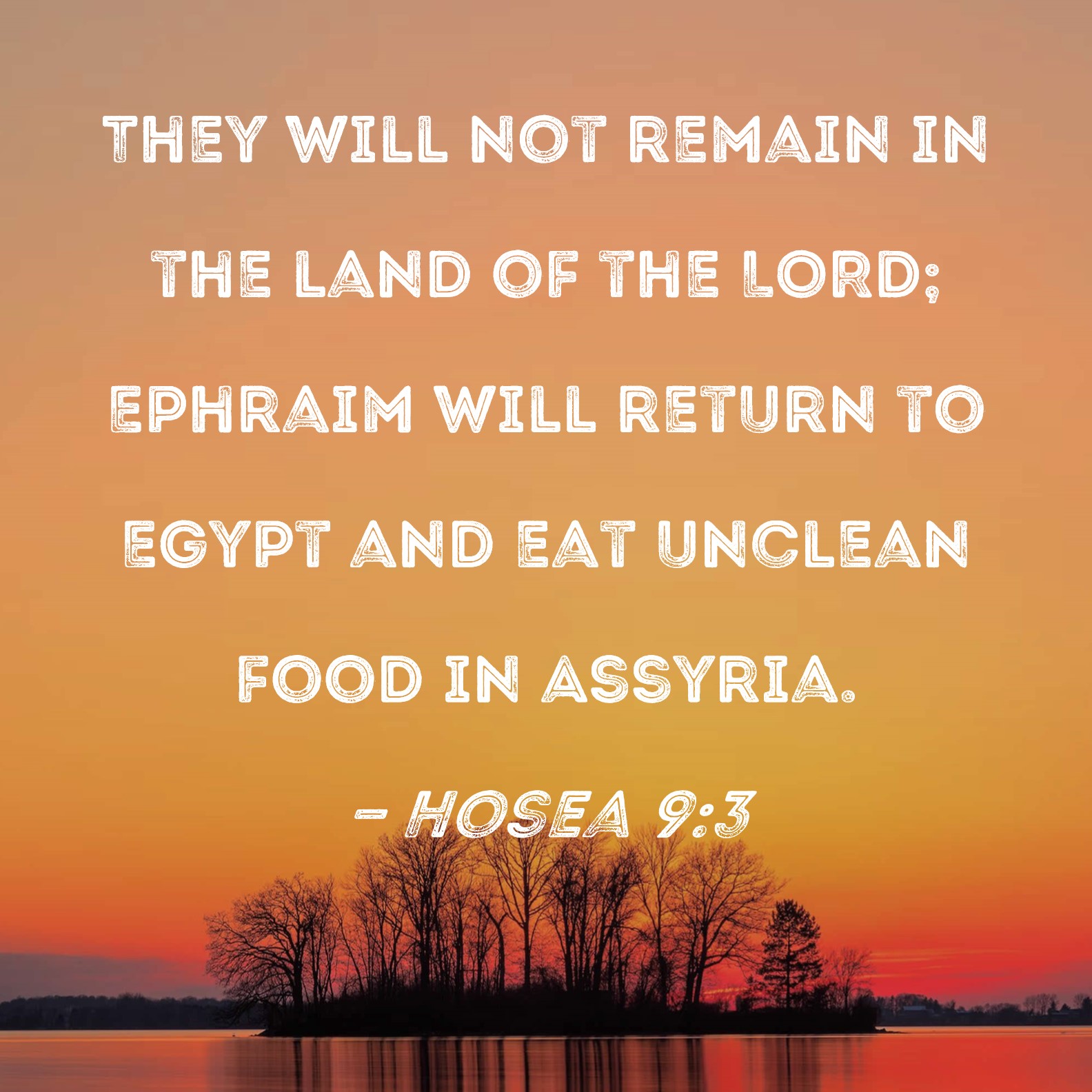 Hosea 9:3 They will not remain in the land of the LORD; Ephraim will return to Egypt and eat unclean food in Assyria.