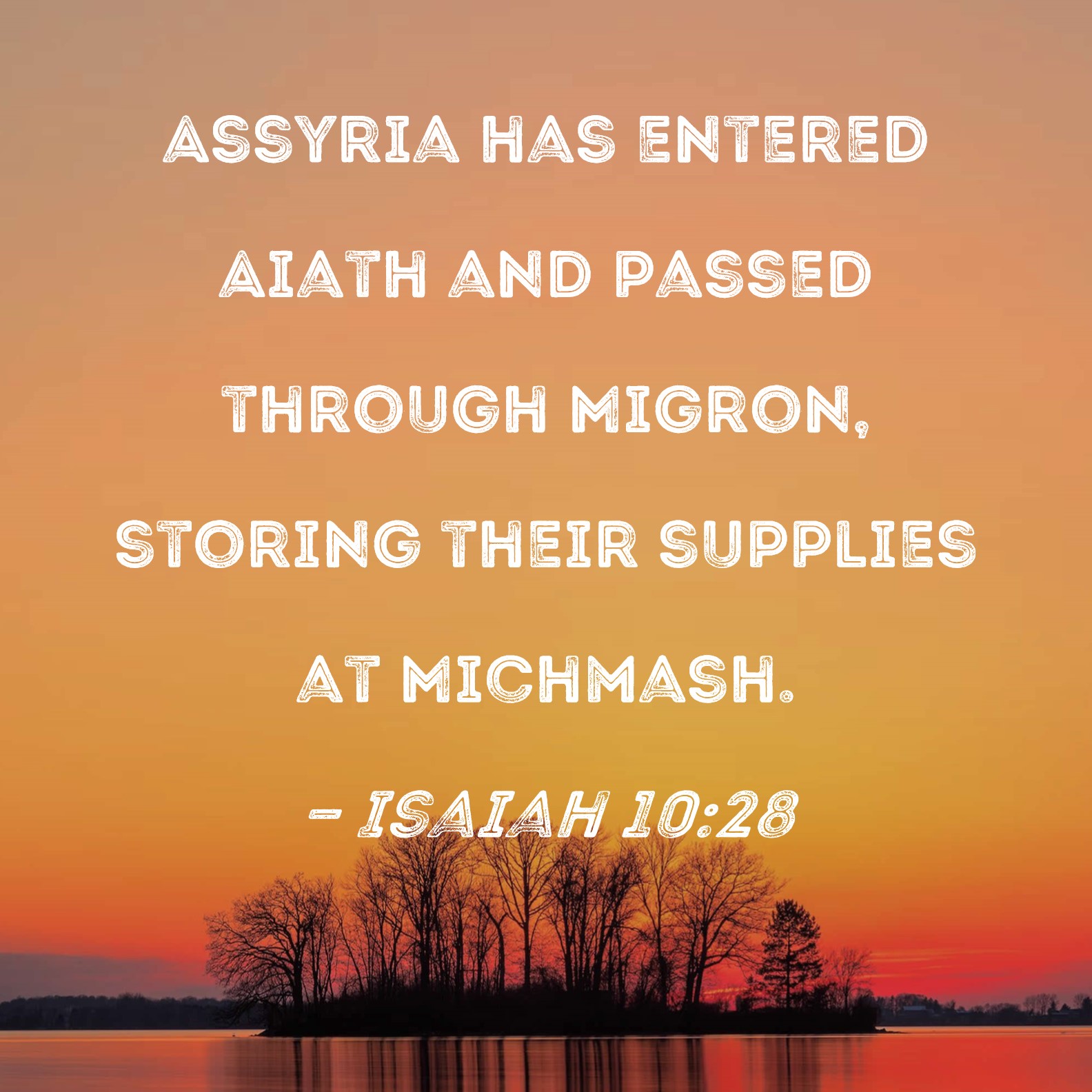Isaiah 10:28 Assyria has entered Aiath and passed through Migron, storing their supplies at Michmash.