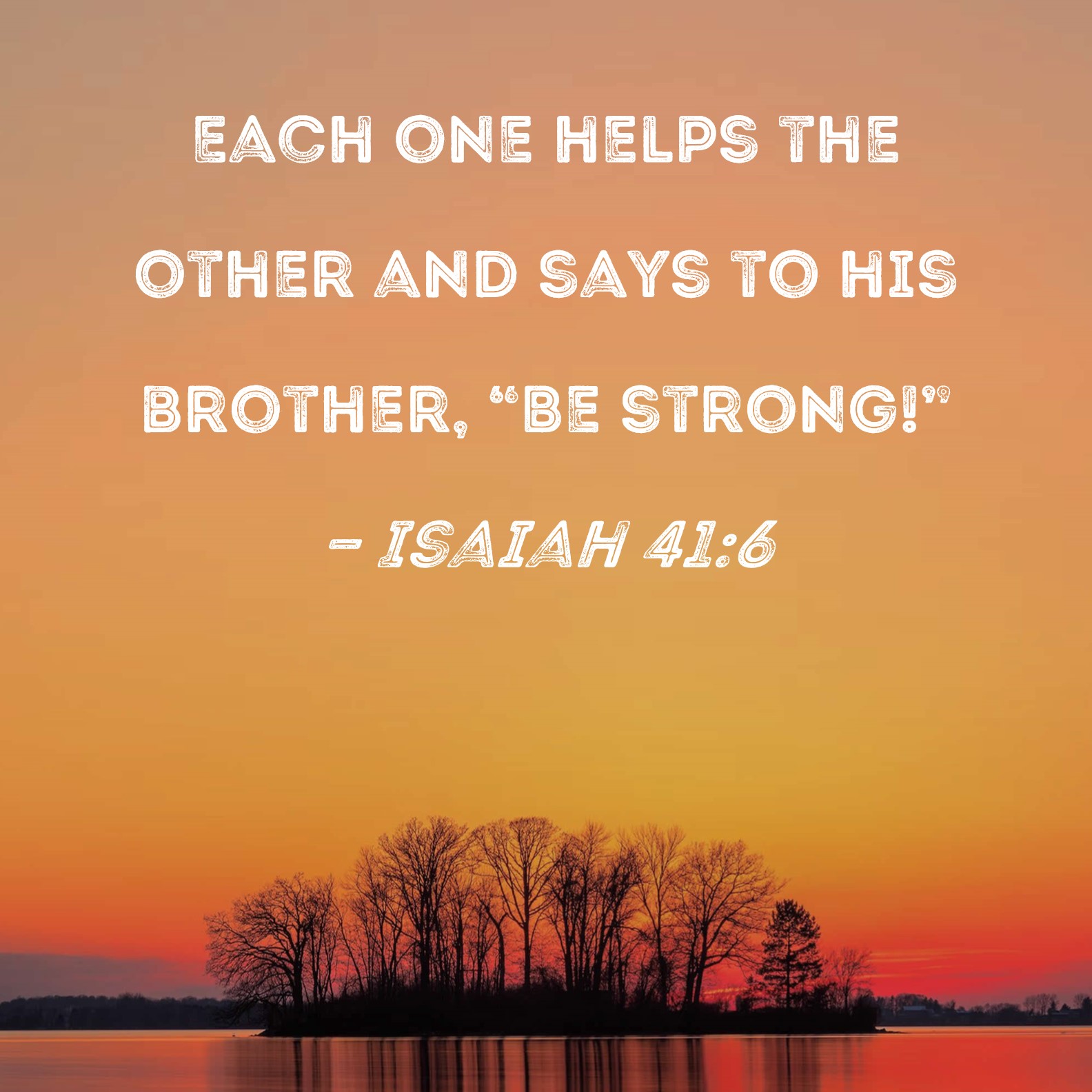 Isaiah 41:6 Each one helps the other and says to his brother, "Be strong!"