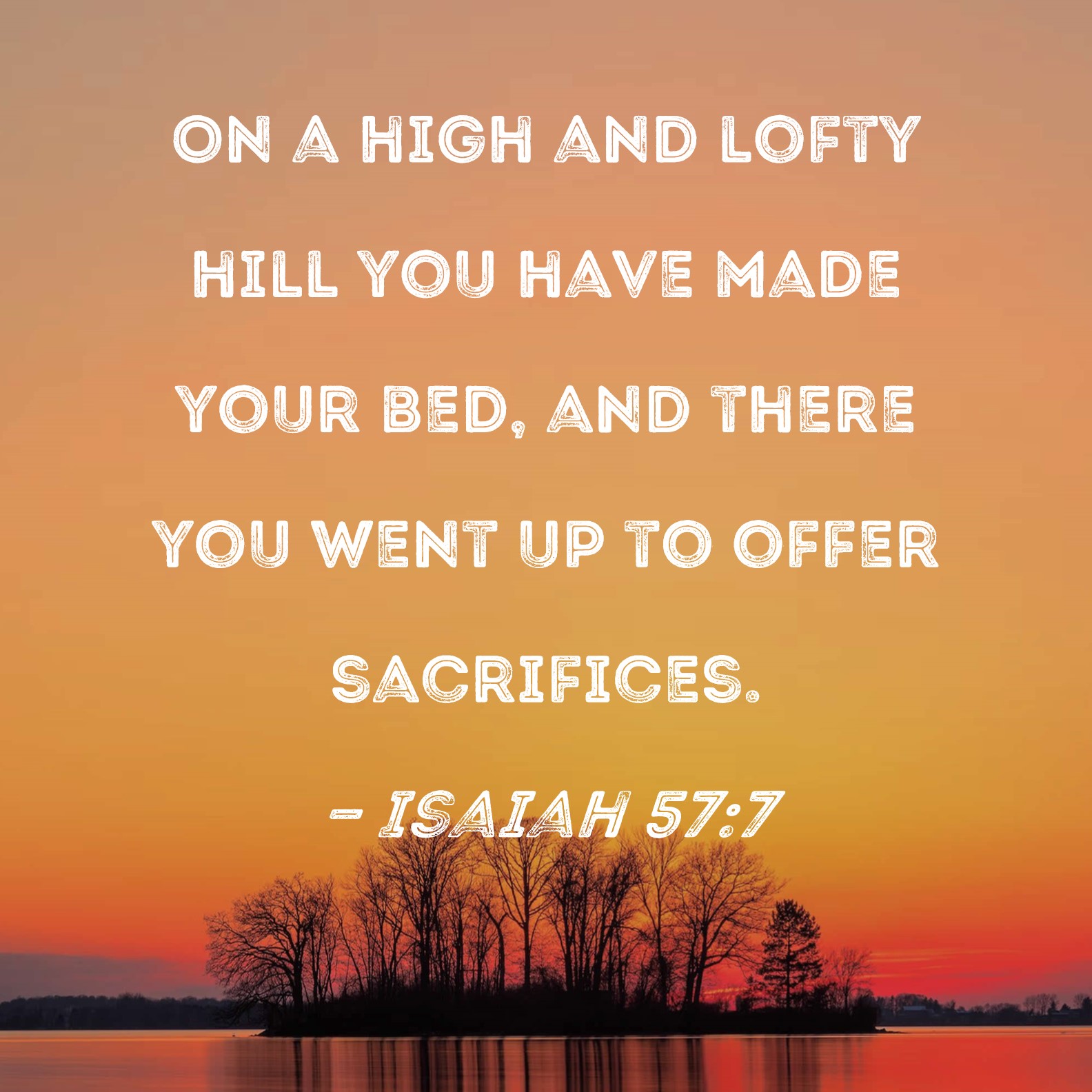 Isaiah 57:7 On a high and lofty hill you have made your bed, and there you went up to offer sacrifices.