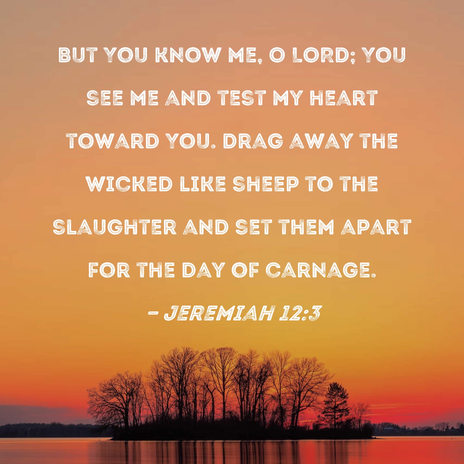 Jeremiah 12:3 But You know me, O LORD; You see me and test my heart toward You. Drag away the wicked like sheep to the slaughter and set them apart for the day of carnage.