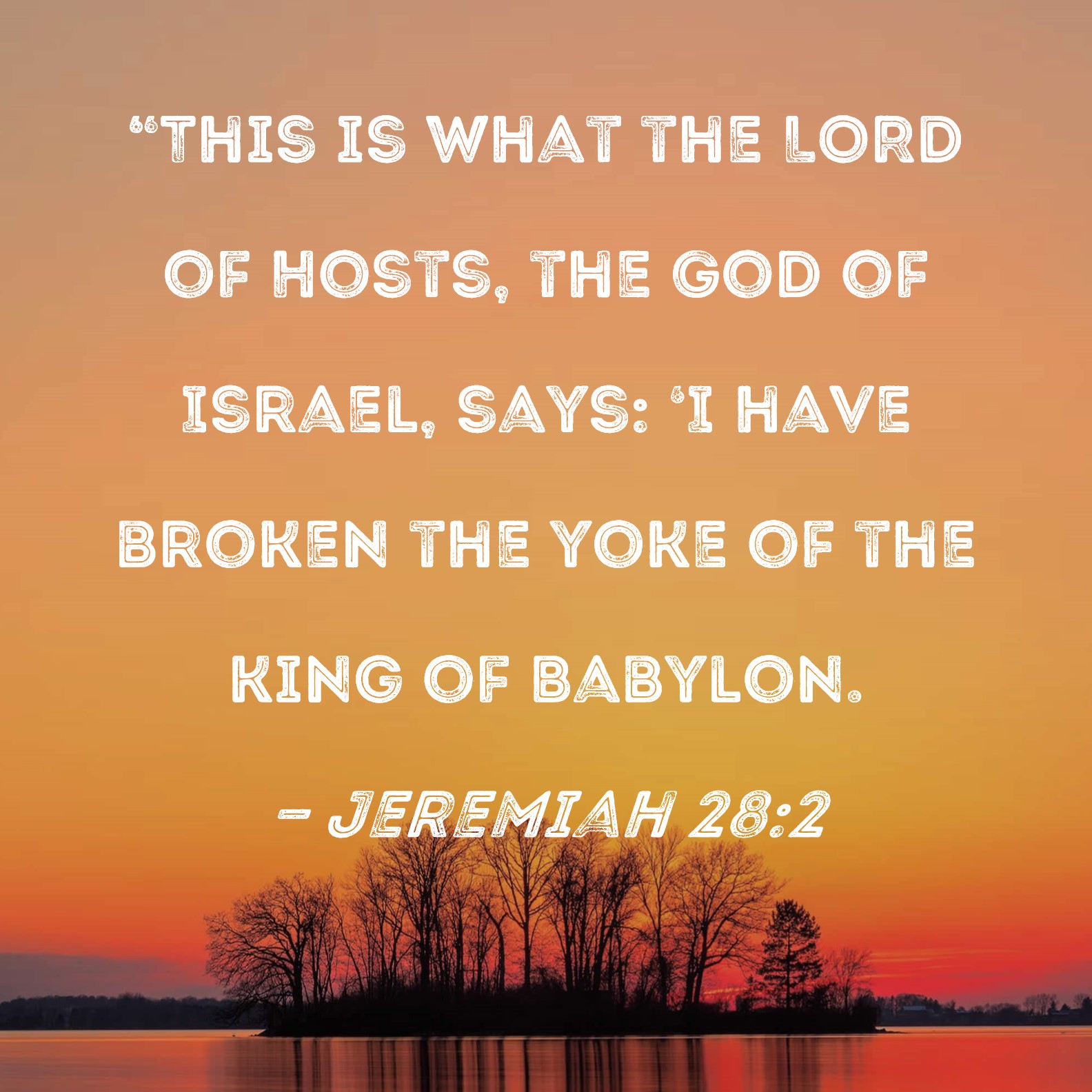 Jeremiah 28:2 "This is what the LORD of Hosts, the God of Israel, says: 'I have broken the yoke of the king of Babylon.