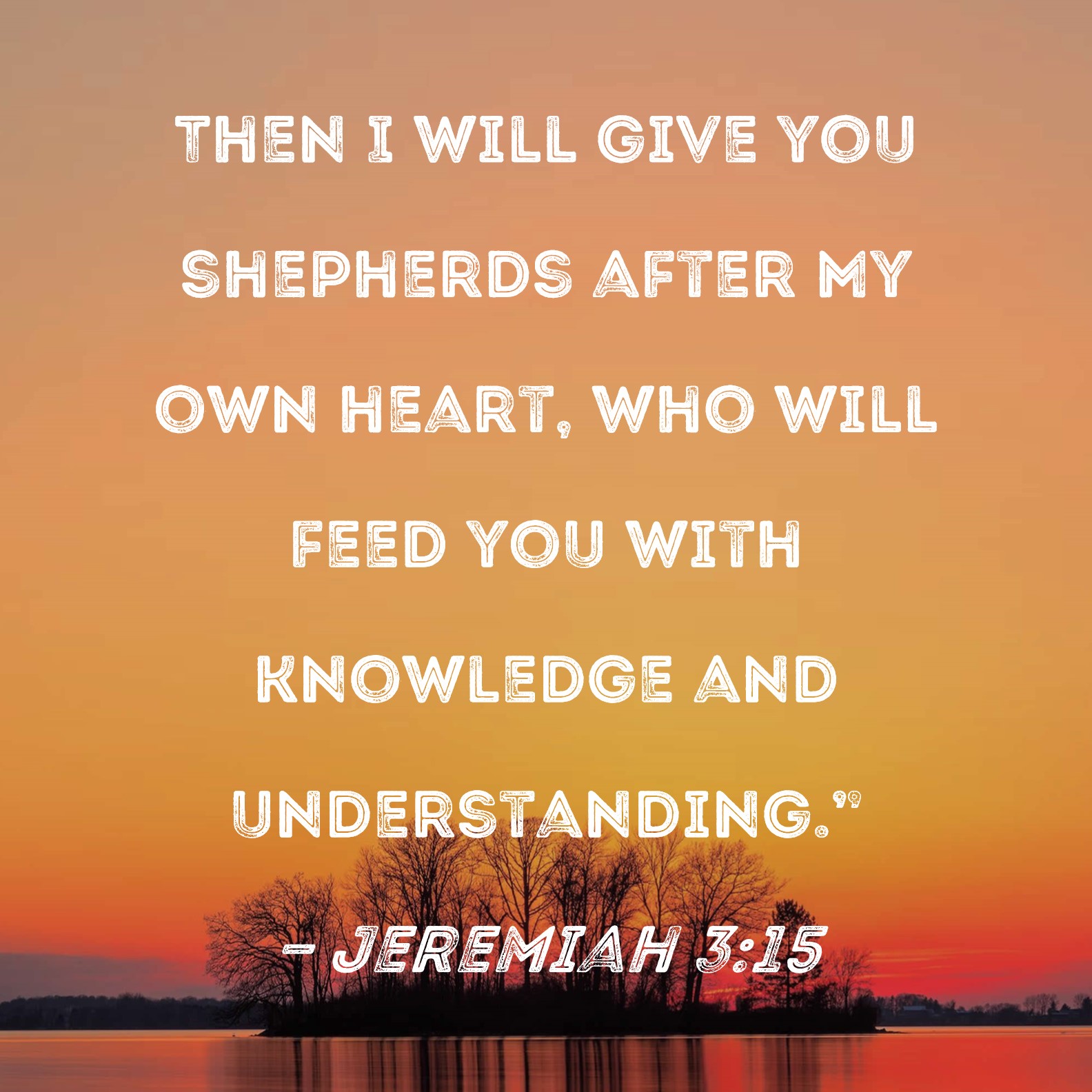 Jeremiah 3:15 Then I will give you shepherds after My own heart, who will feed you with knowledge and understanding."