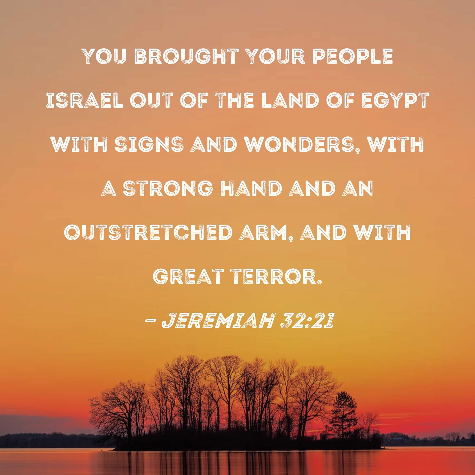 Jeremiah 32:21 You brought Your people Israel out of the land of Egypt with signs and wonders, with a strong hand and an outstretched arm, and with great terror.