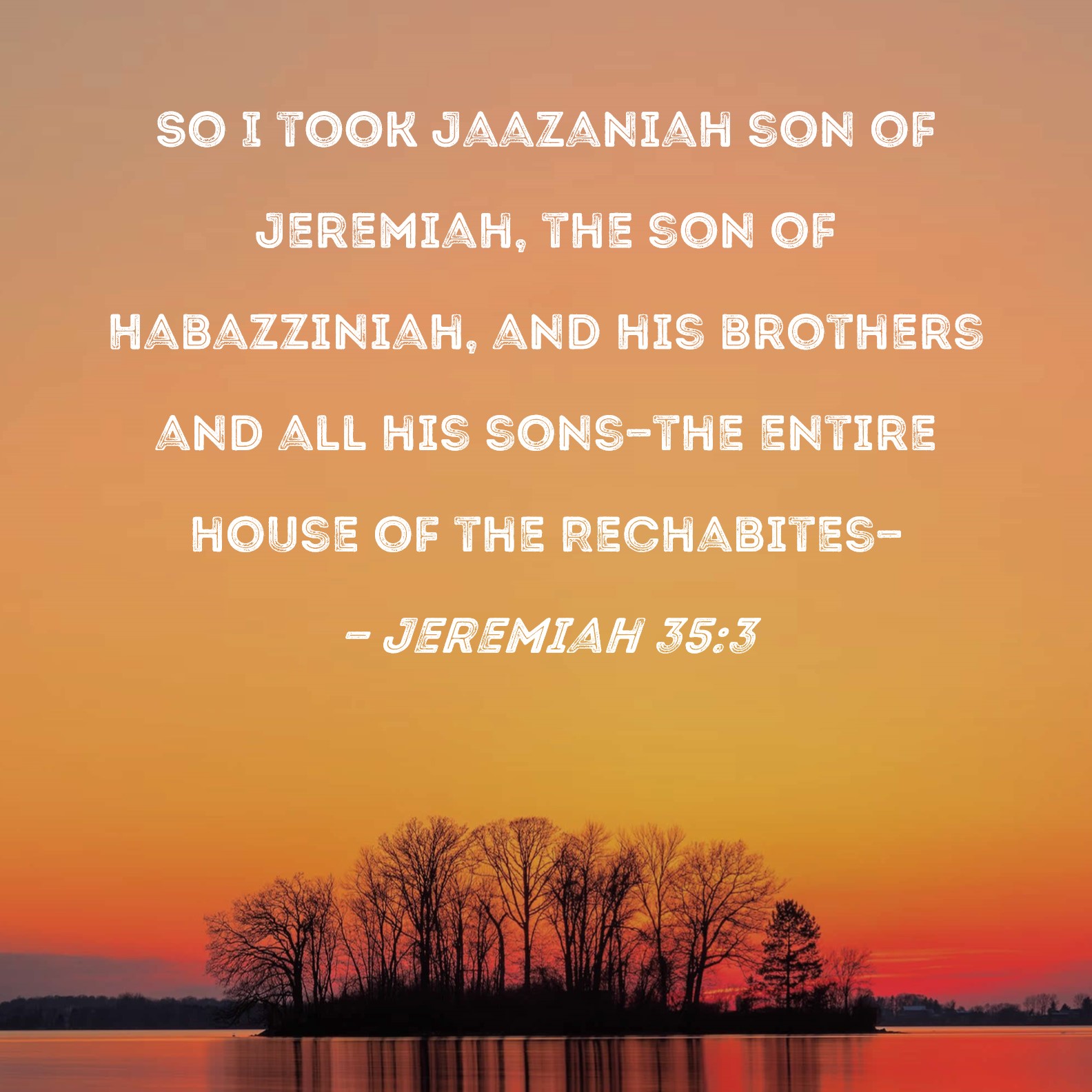 Jeremiah 35:3 So I took Jaazaniah son of Jeremiah, the son of Habazziniah, and his brothers and all his sons--the entire house of the Rechabites--