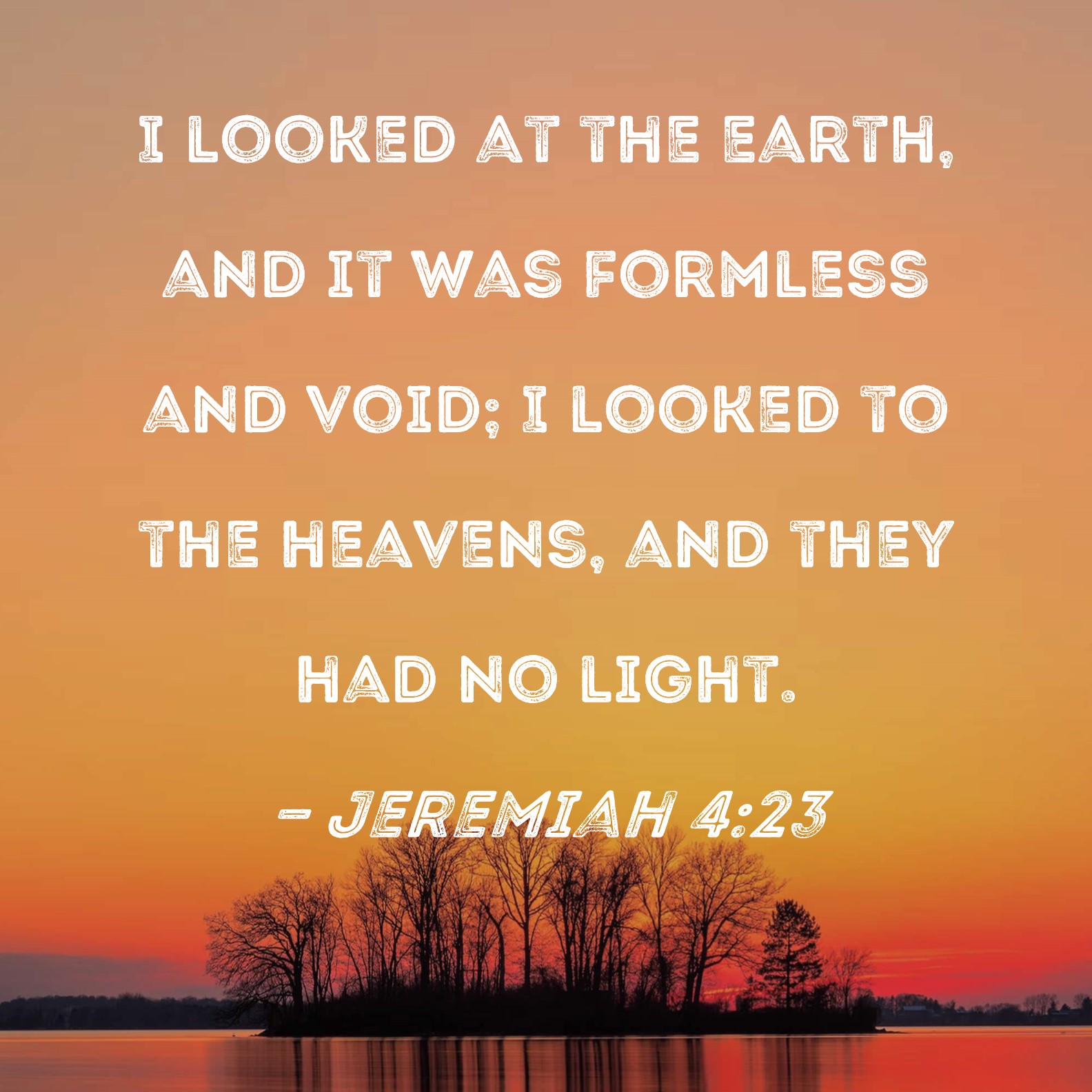 Jeremiah 4:23 I looked at the earth, and it was formless and void; I looked to the heavens, and they had no light.