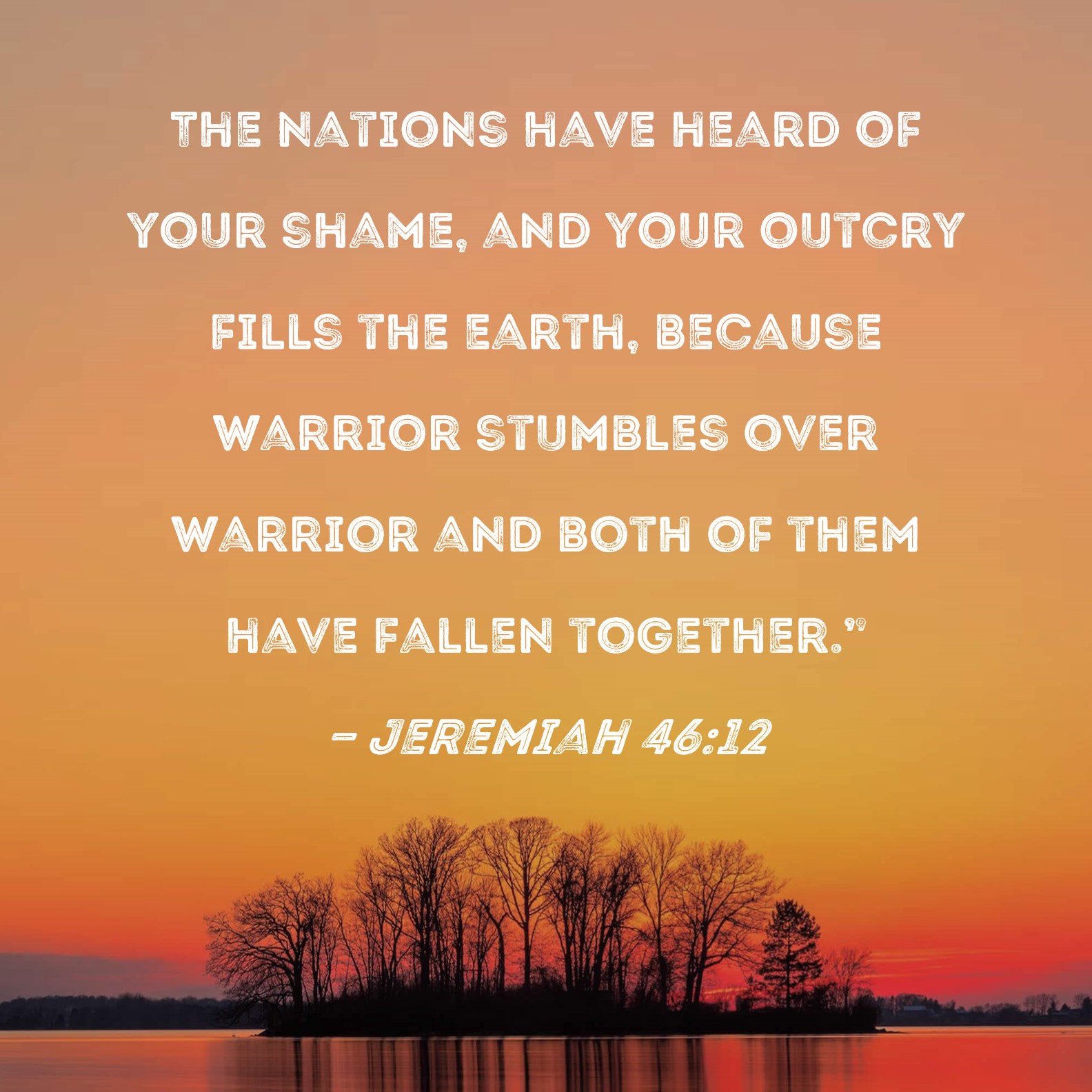 Jeremiah 46:12 The nations have heard of your shame, and your outcry fills the earth, because warrior stumbles over warrior and both of them have fallen together."