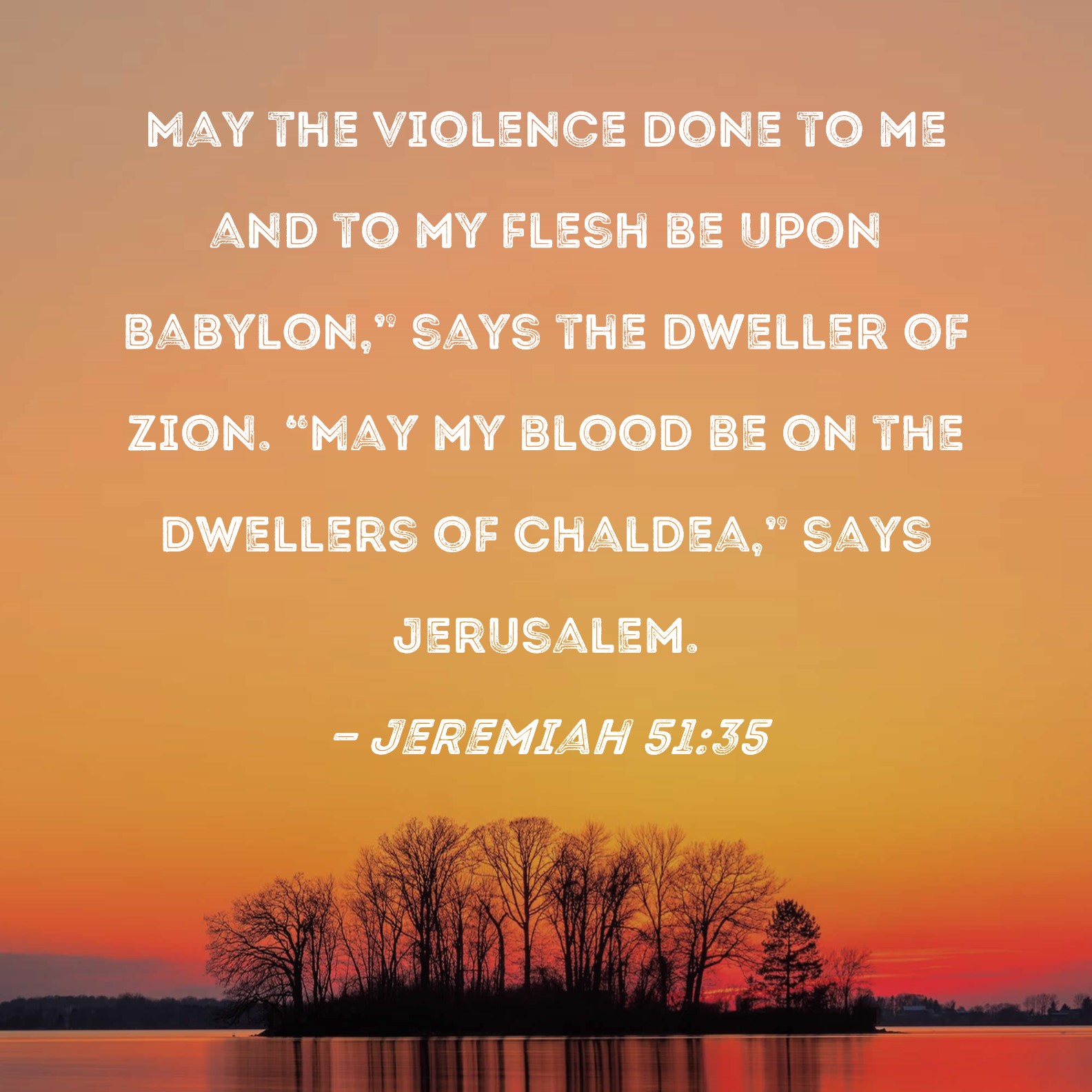 Jeremiah 51:35 May the violence done to me and to my flesh be upon Babylon," says the dweller of Zion. "May my blood be on the dwellers of Chaldea," says Jerusalem.