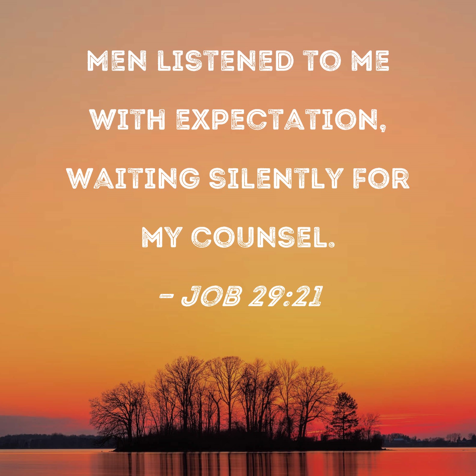 Job 29:21 Men listened to me with expectation, waiting silently for my counsel.