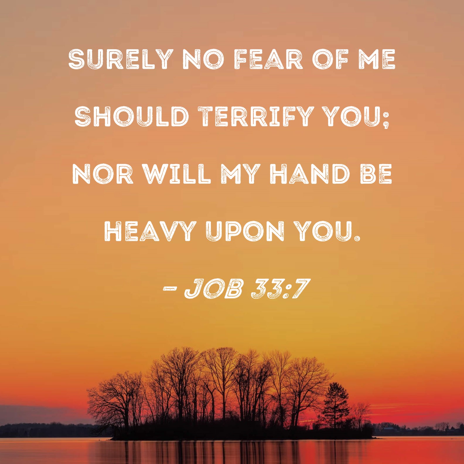 Job 33:7 Surely no fear of me should terrify you; nor will my hand be heavy upon you.