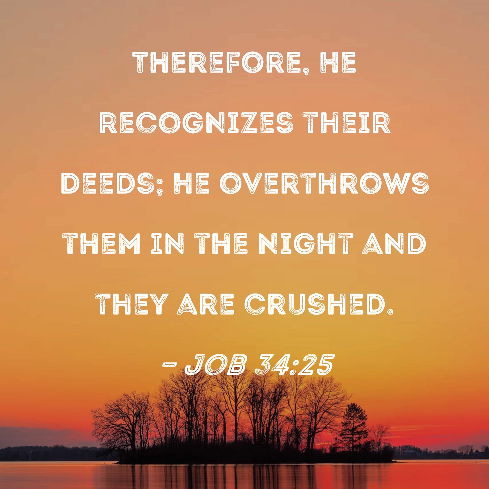 Job 34:25 Therefore, He recognizes their deeds; He overthrows them in the night and they are crushed.