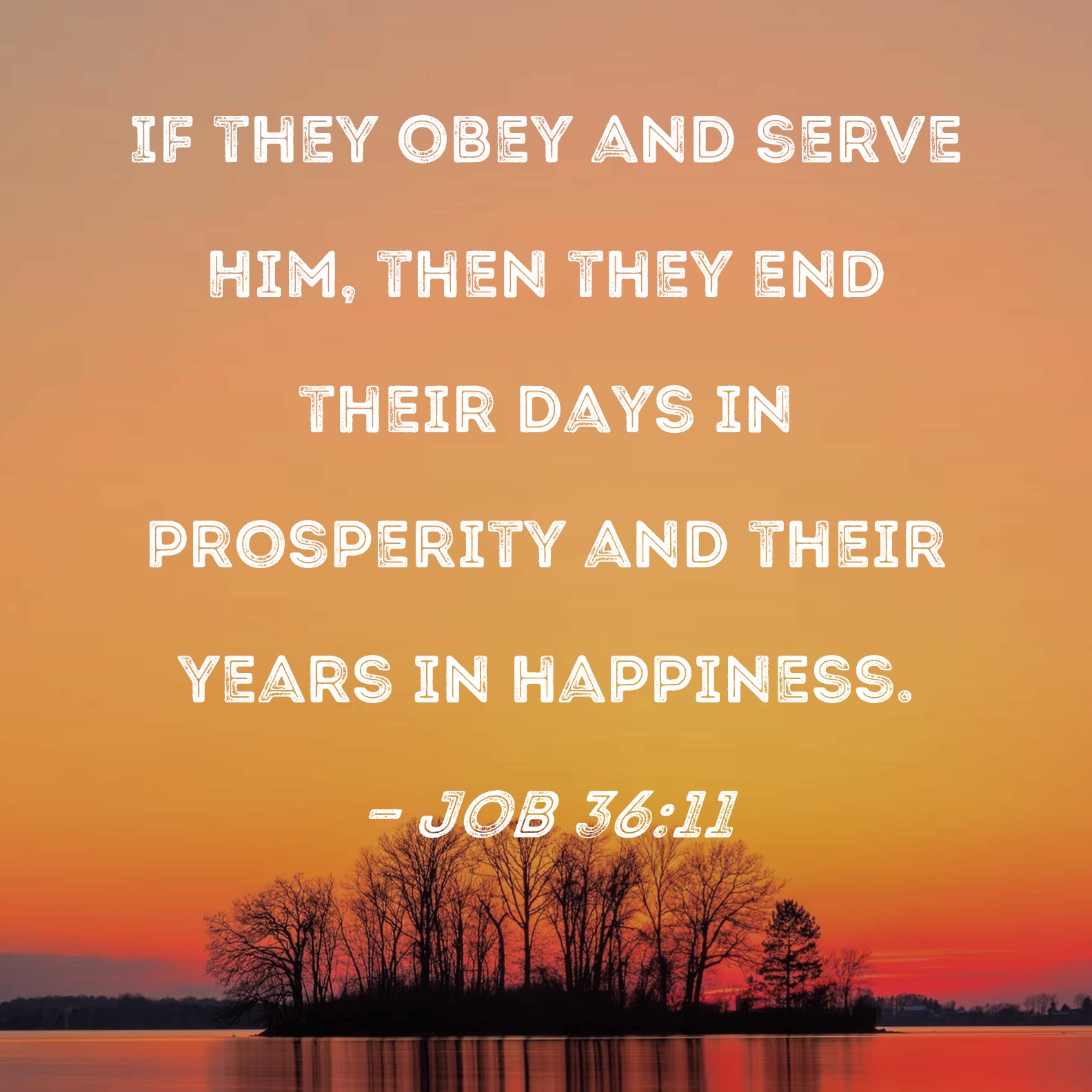 Job 36:11 If they obey and serve Him, then they end their days in prosperity and their years in happiness.