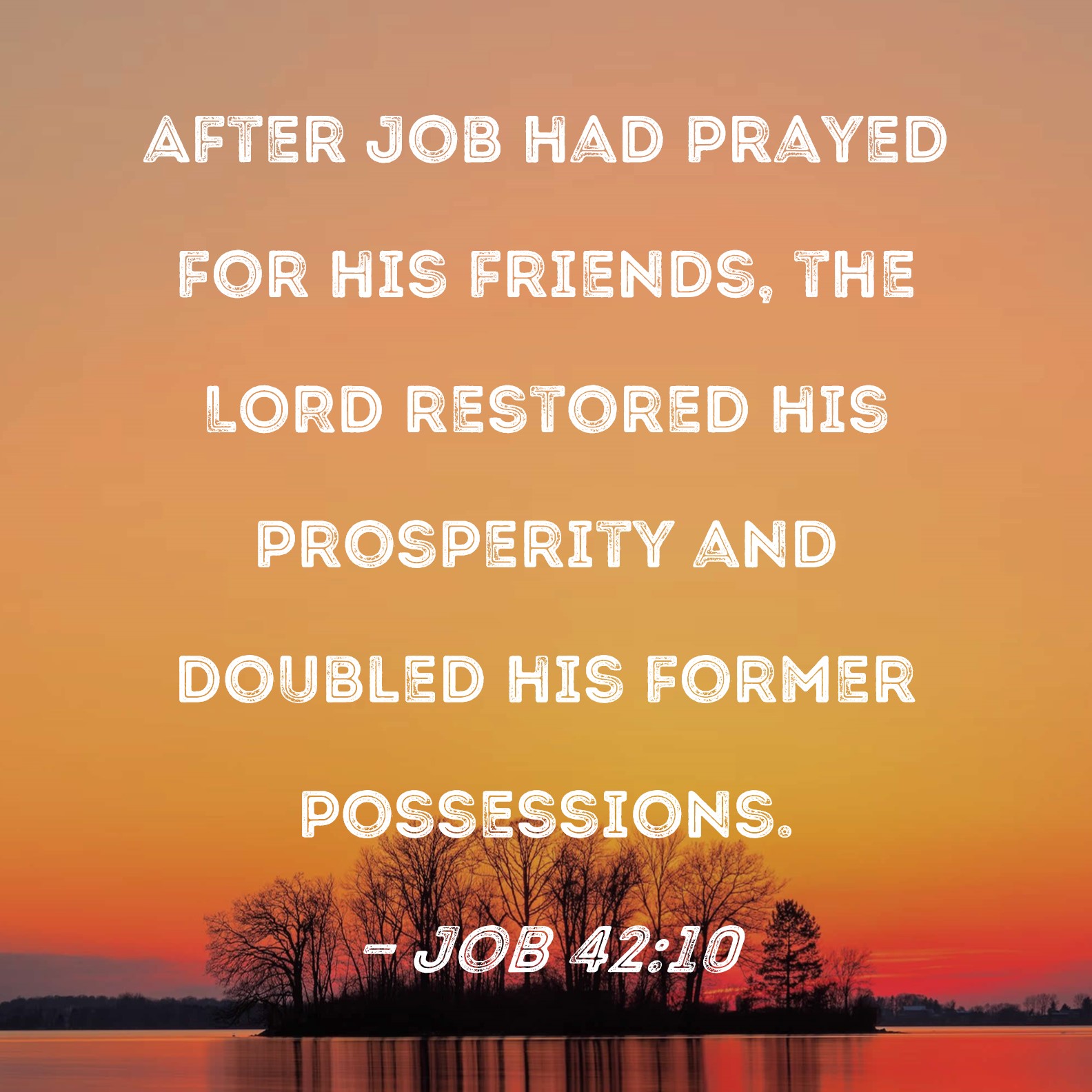 Job 42:10 After Job had prayed for his friends, the LORD restored his prosperity and doubled his former possessions.