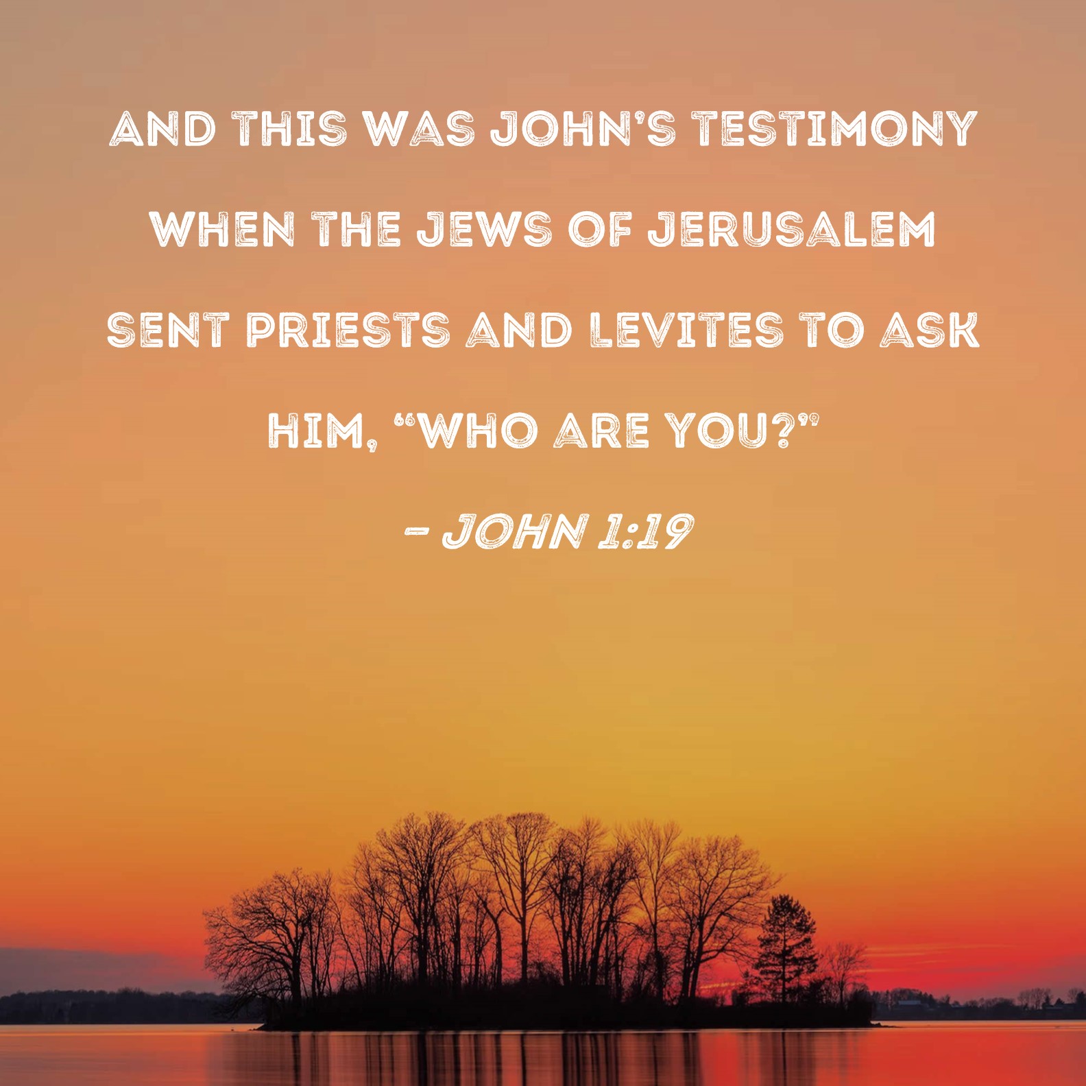 John 1:19 And this was John's testimony when the Jews of Jerusalem sent priests and Levites to ask him, "Who are you?"