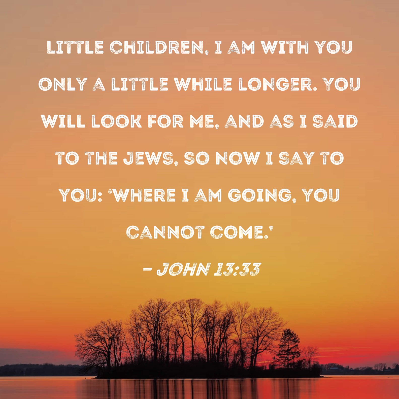 John 13:33 Little children, I am with you only a little while longer. You will look for Me, and as I said to the Jews, so now I say to you: 'Where I am going, you cannot come.'