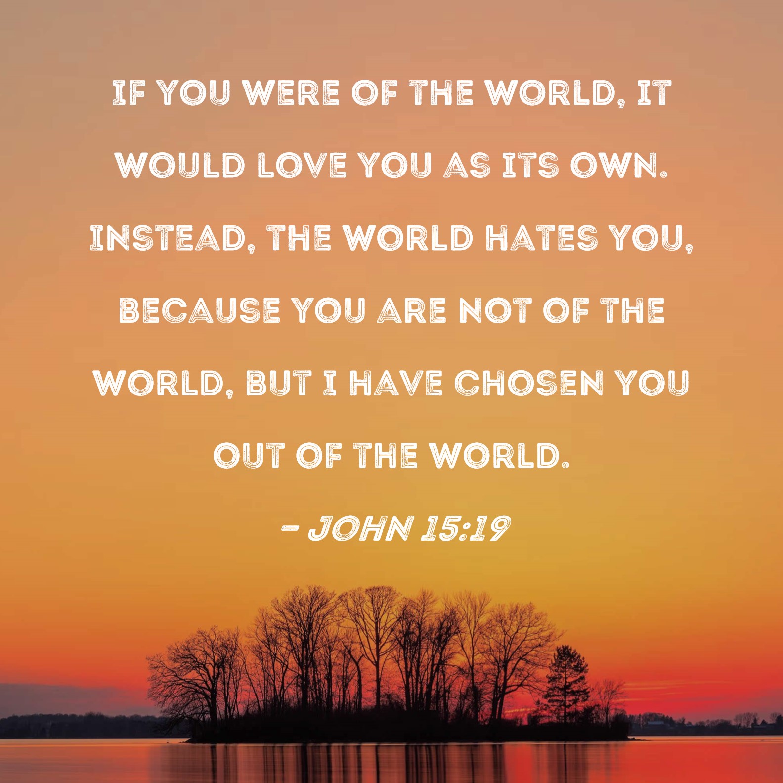 John 15:19 If you were of the world, it would love you as its own. Instead, the world hates you, because you are not of the world, but I have chosen you out of the world.