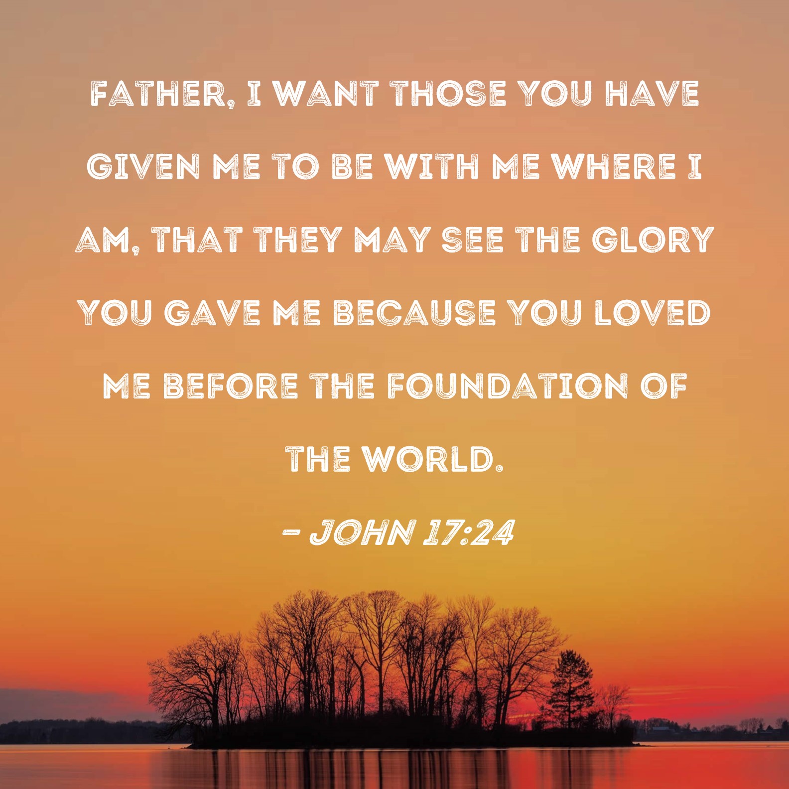 John 17:24 Father, I want those You have given Me to be with Me where I am, that they may see the glory You gave Me because You loved Me before the foundation of the world.