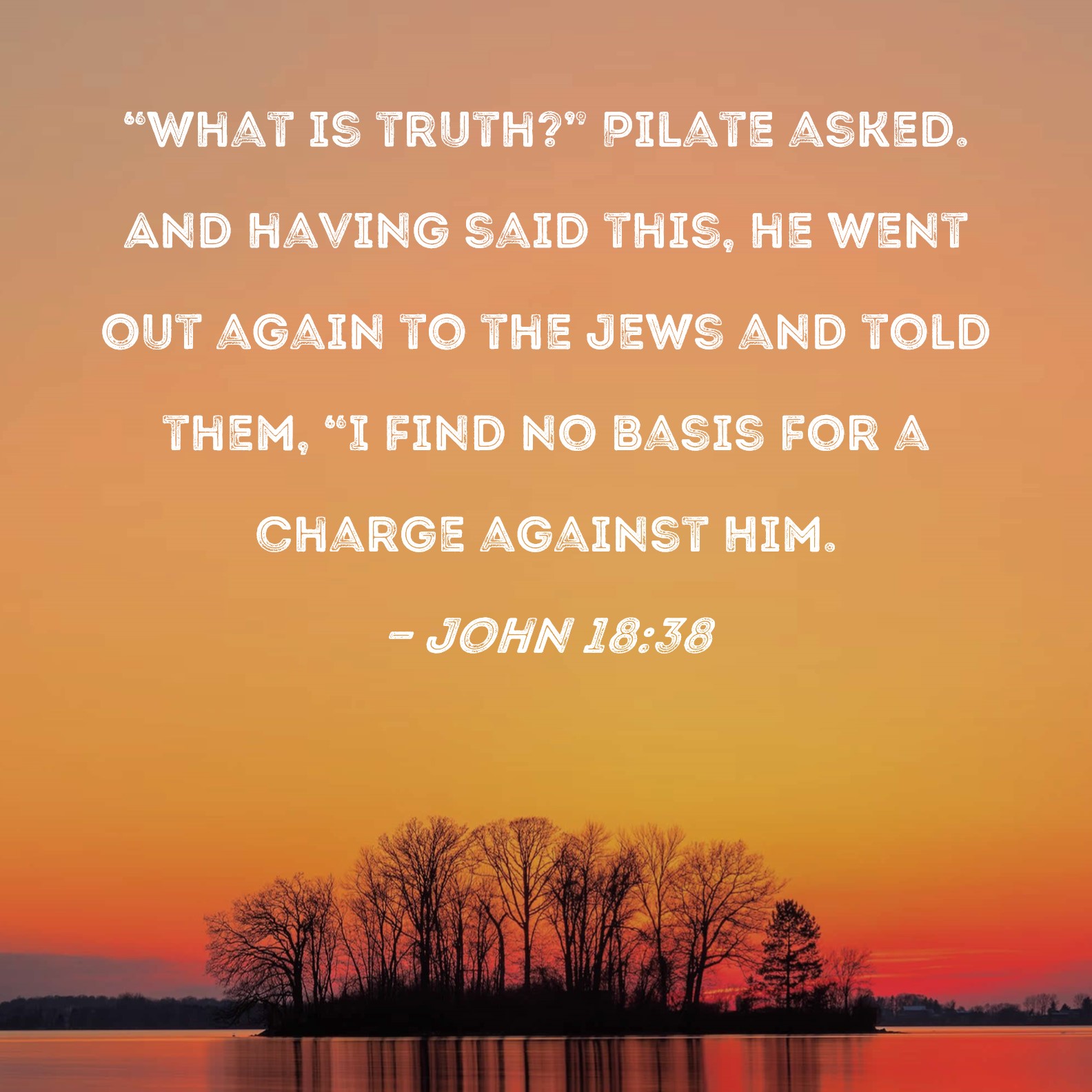 John 18:38 "What is truth?" Pilate asked. And having said this, he went out again to the Jews and told them, "I find no basis for a charge against Him.