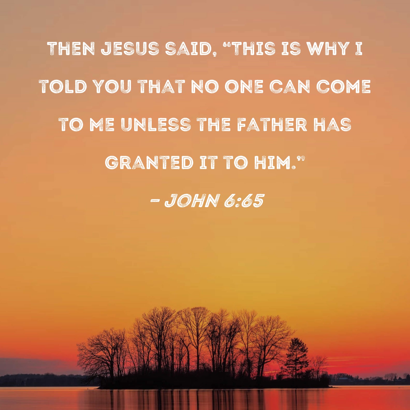 John 6:65 Then Jesus said, "This is why I told you that no one can come to Me unless the Father has granted it to him."