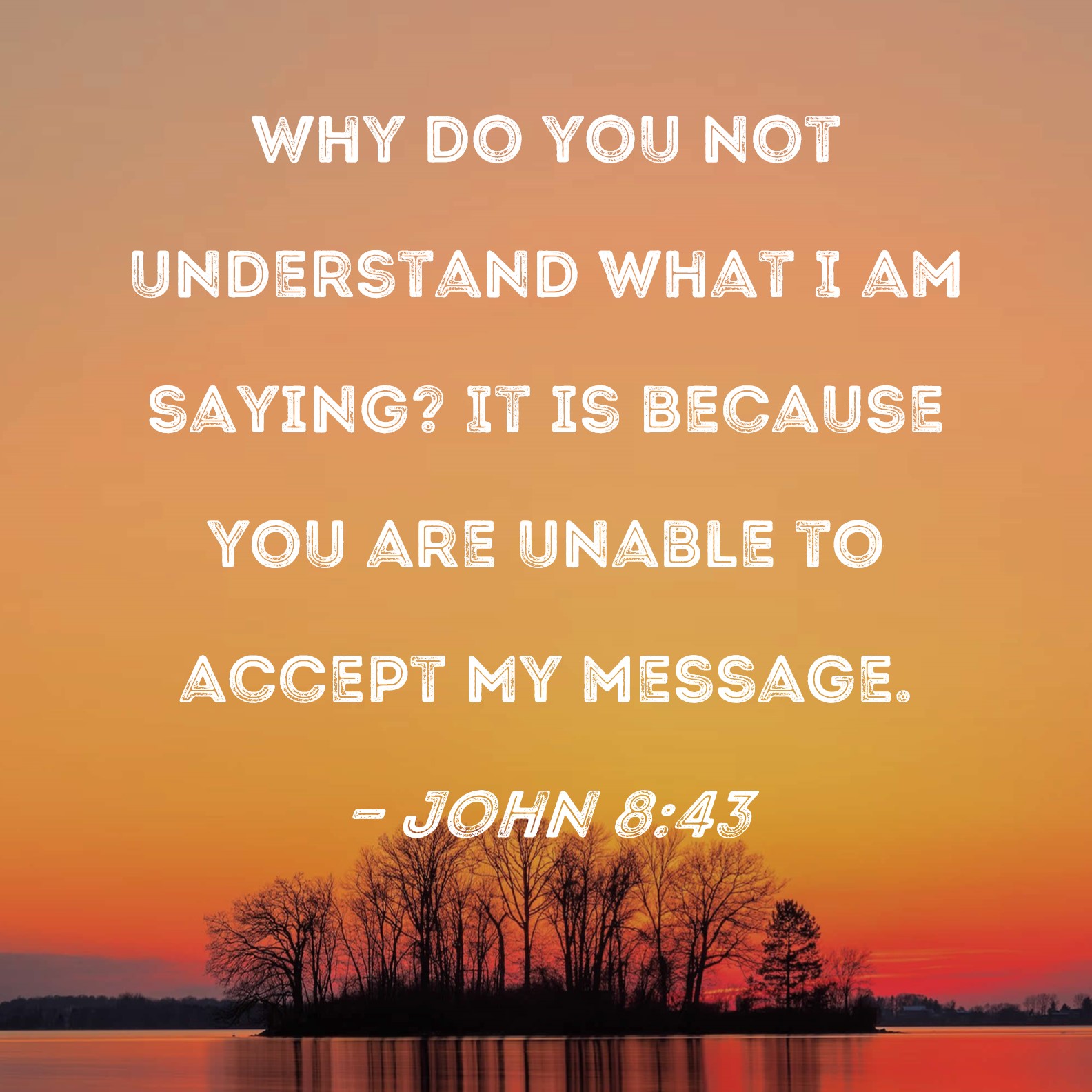 John 8:43 Why do you not understand what I am saying? It is because you are unable to accept My message.