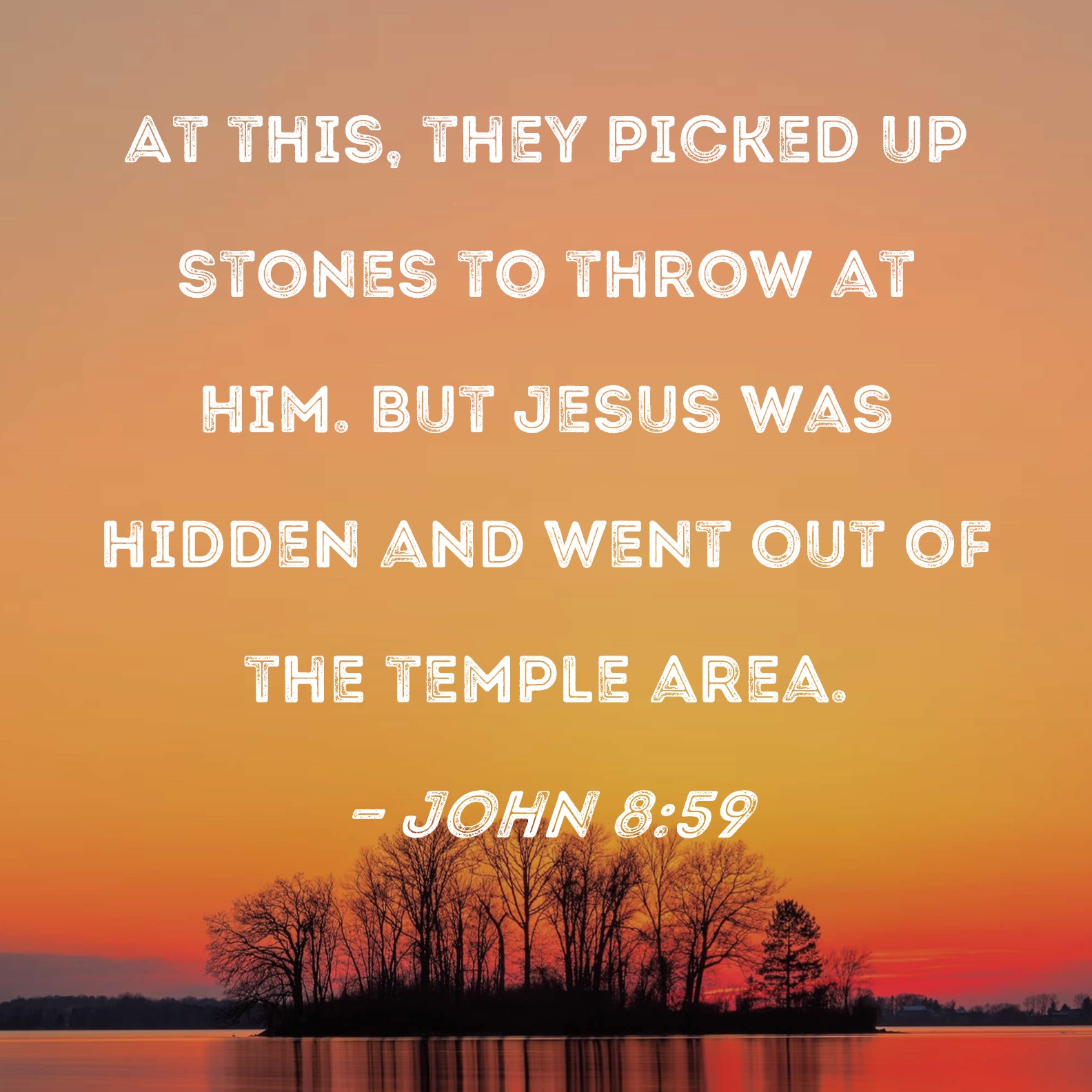 John 8:59 At this, they picked up stones to throw at Him. But Jesus was hidden and went out of the temple area.
