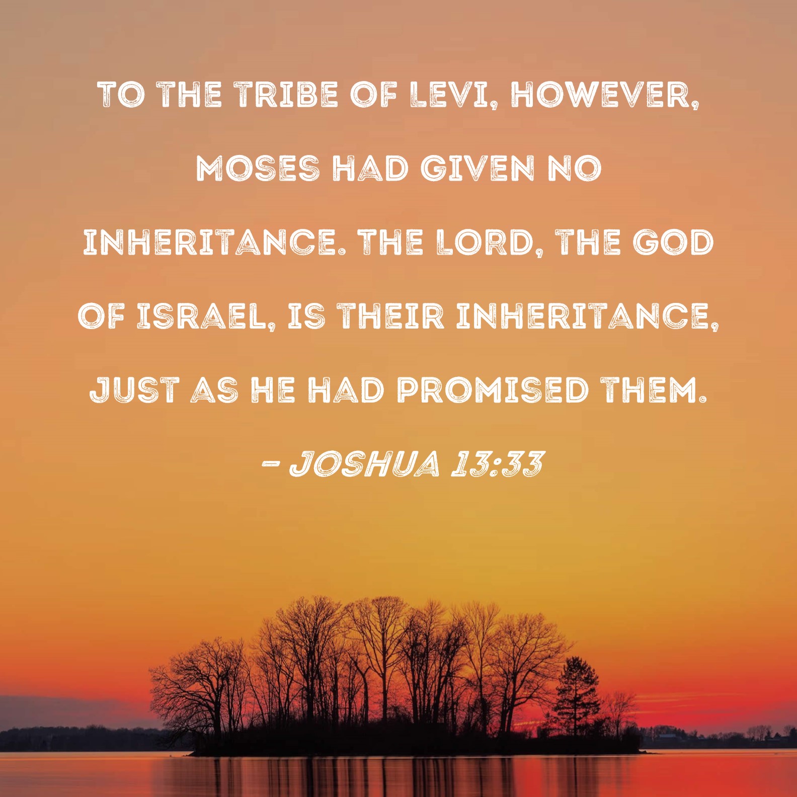 Joshua 13:33 To the tribe of Levi, however, Moses had given no inheritance. The LORD, the God of Israel, is their inheritance, just as He had promised them.