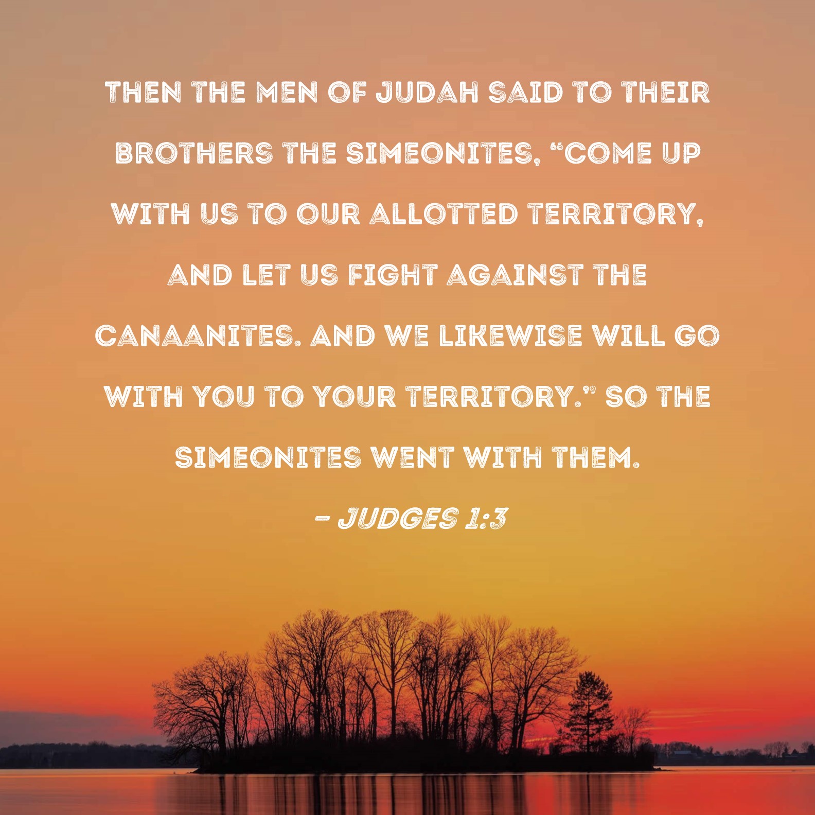 Judges 1:3 Then the men of Judah said to their brothers the Simeonites, "Come up with us to our allotted territory, and let us fight against the Canaanites. And we likewise will go with you to your territory." So the Simeonites went with them.