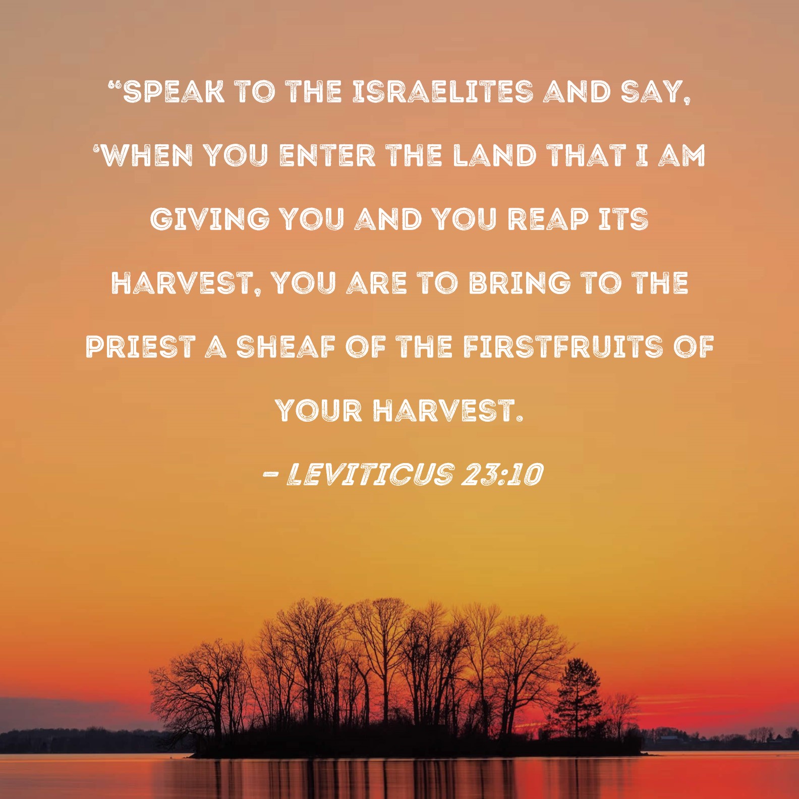 Leviticus 23:10 "Speak to the Israelites and say, 'When you enter the land that I am giving you and you reap its harvest, you are to bring to the priest a sheaf of the firstfruits of your harvest.