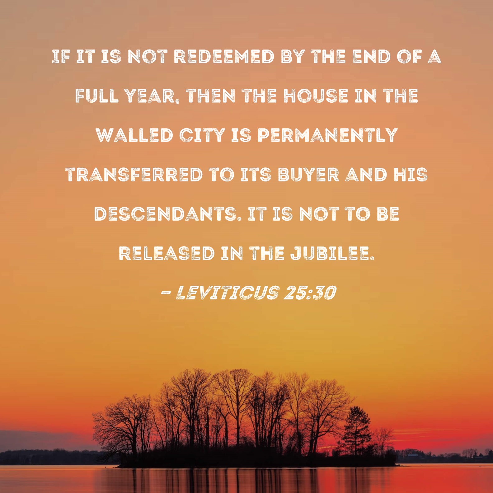 Leviticus 25:30 If it is not redeemed by the end of a full year, then the house in the walled city is permanently transferred to its buyer and his descendants. It is not to be released in the Jubilee.