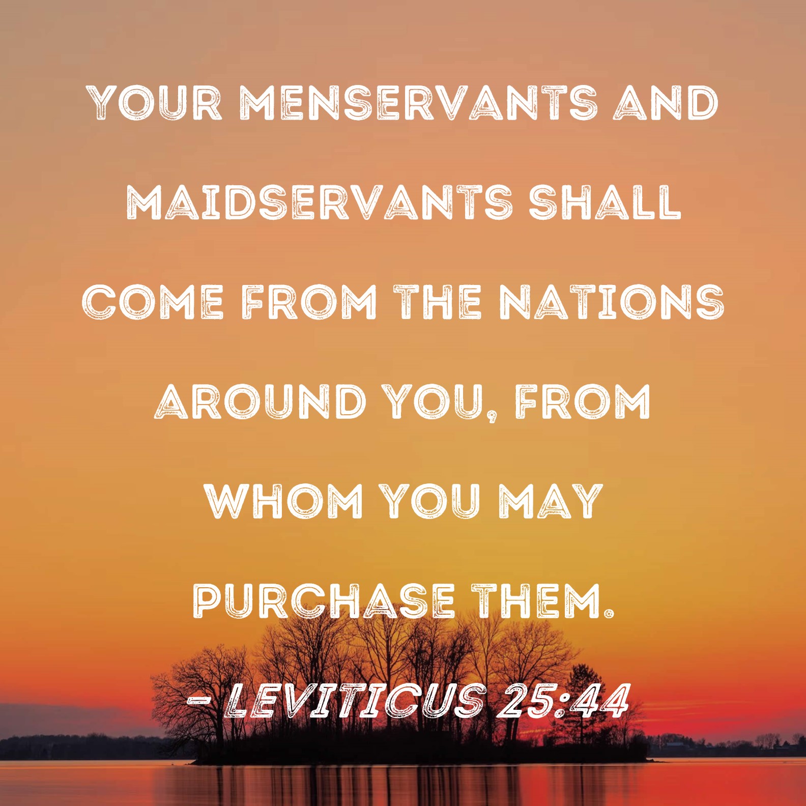 Leviticus 25:44 Your menservants and maidservants shall come from the nations around you, from whom you may purchase them.