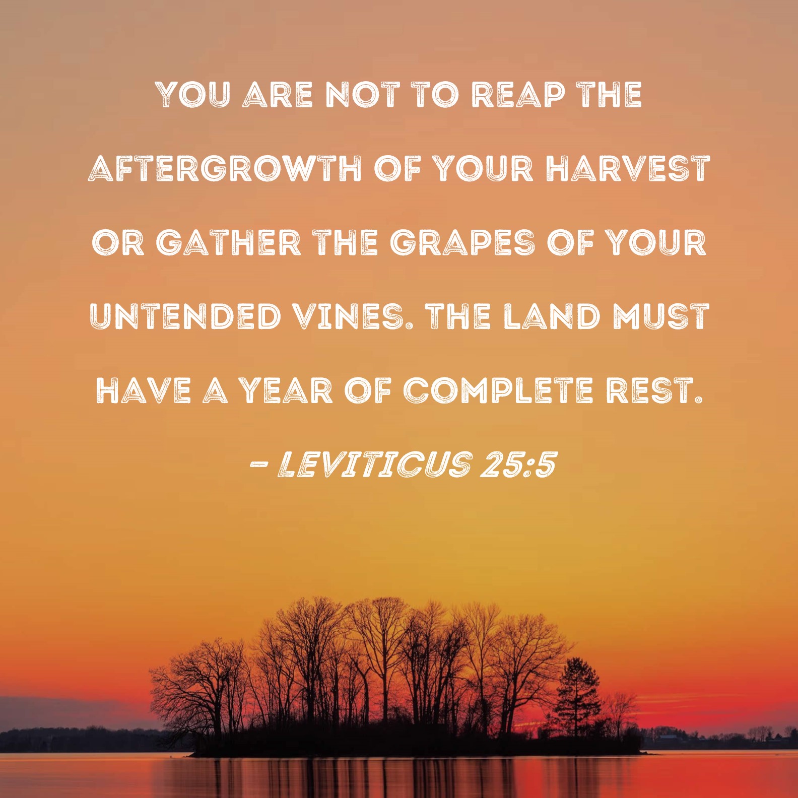 Leviticus 25:5 You are not to reap the aftergrowth of your harvest or gather the grapes of your untended vines. The land must have a year of complete rest.