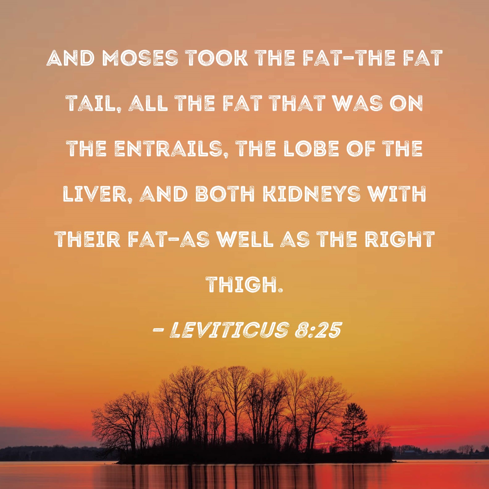 Leviticus 8:25 And Moses took the fat--the fat tail, all the fat that was on the entrails, the lobe of the liver, and both kidneys with their fat--as well as the right thigh.