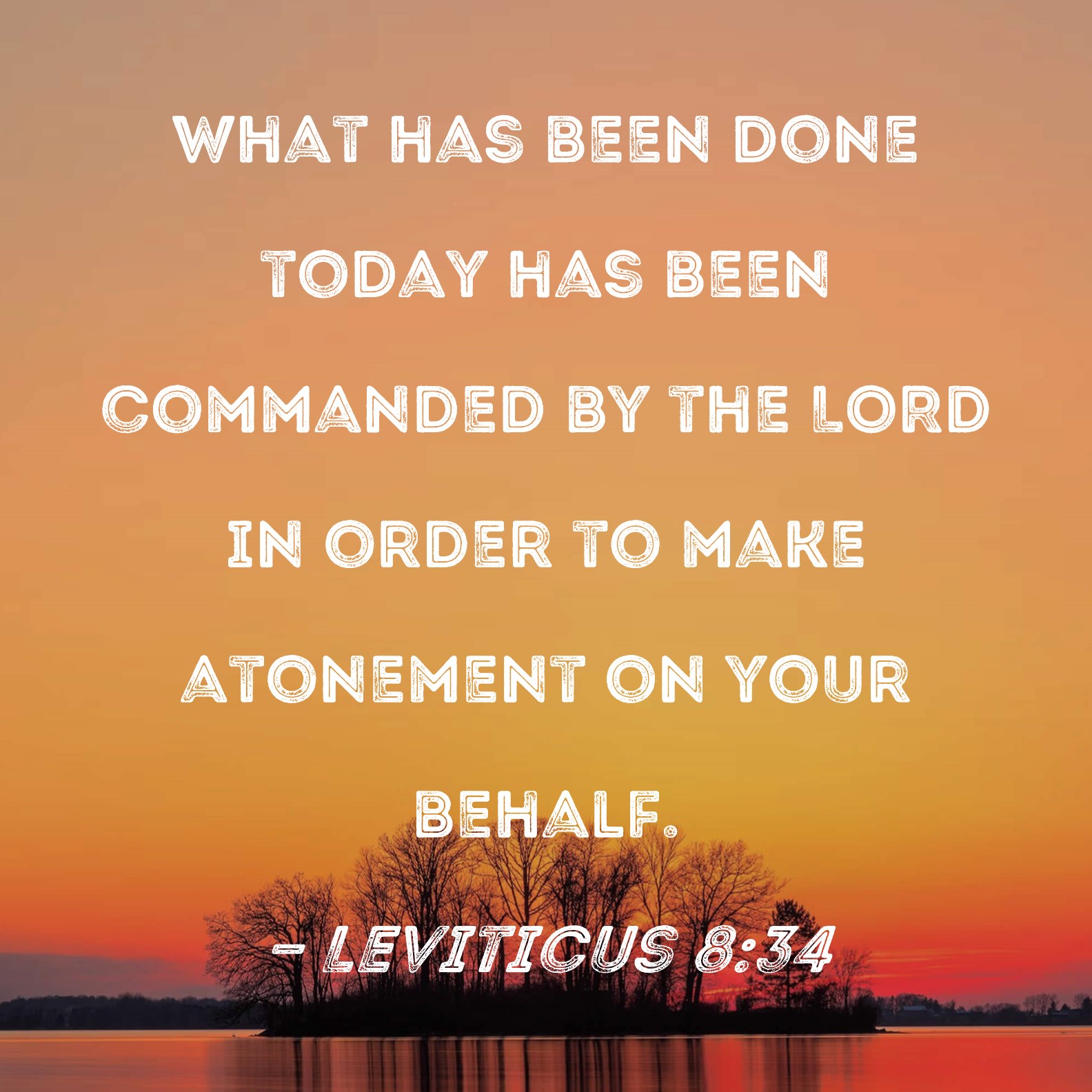 BSB: What has been done today has been commanded by the LORD in order to make atonement on your behalf. KJV: As he hath done this day, so the LORD hath commanded to do, to make an atonement for you. DRB: As at this present it hath been done, that the rite of the sacrifice might be accomplished. DBT: As he hath done this day, so Jehovah hath commanded to do, to make atonement for you. ERV: As hath been done this day, so the LORD hath commanded to do, to make atonement for you. WBT: As he hath done this day, so the LORD hath commanded to do, to make an atonement for you. WEB: What has been done today, so Yahweh has commanded to do, to make atonement for you. YLT: as he hath done on this day, Jehovah hath commanded to do, to make atonement for you;Links Leviticus 8:34 NIV • Leviticus 8:34 NLT • Leviticus 8:34 ESV • Leviticus 8:34 NASB • Leviticus 8:34 KJV • Leviticus 8:34 Interlinear • Leviticus 8:34 Commentaries • Leviticus 8:34 Parallel Texts • Leviticus 8:34 Bible Apps • Leviticus 8:34 Parallel • Bible Hub |