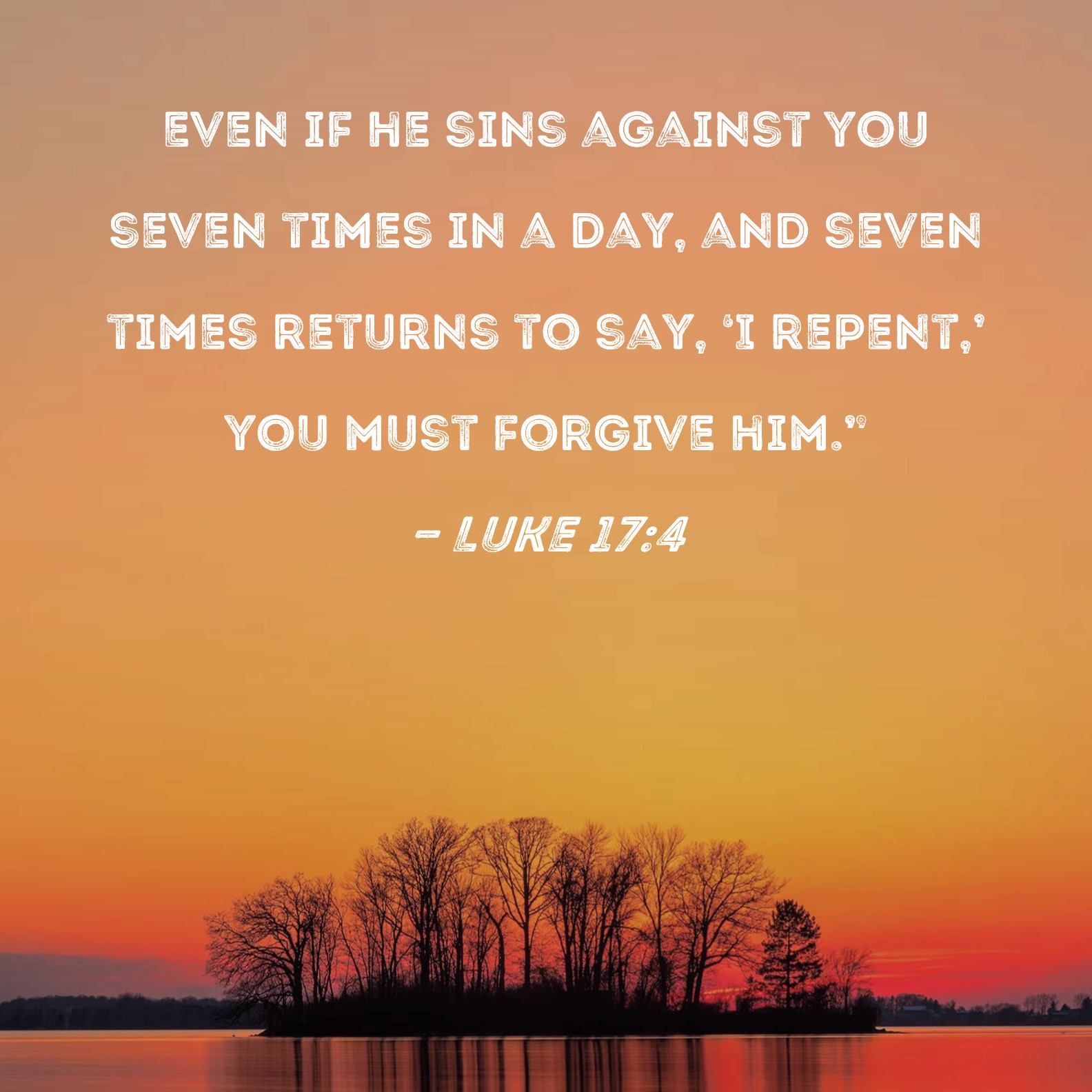 Luke 17:4 Even if he sins against you seven times in a day, and seven times returns to say, 'I repent,' you must forgive him."