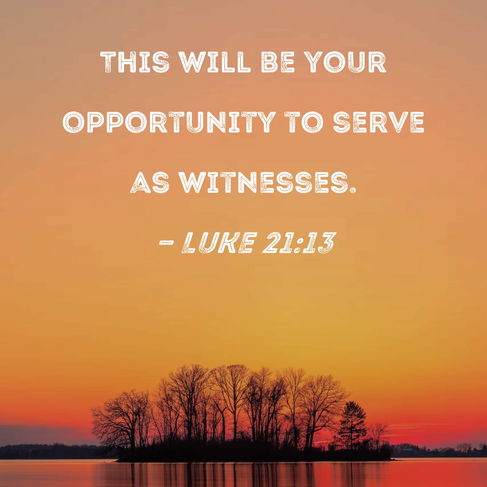 Luke 21:13 This will be your opportunity to serve as witnesses.