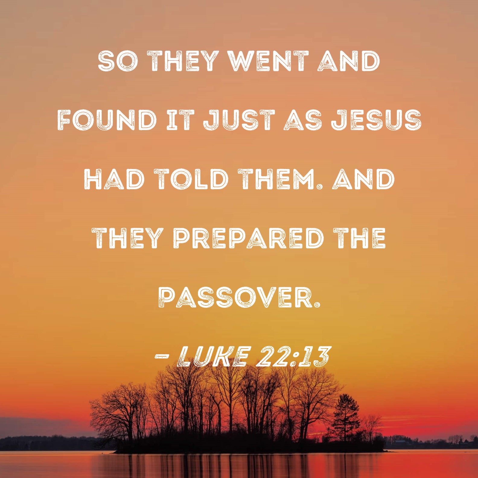 Luke 22:13 So they went and found it just as Jesus had told them. And they prepared the Passover.